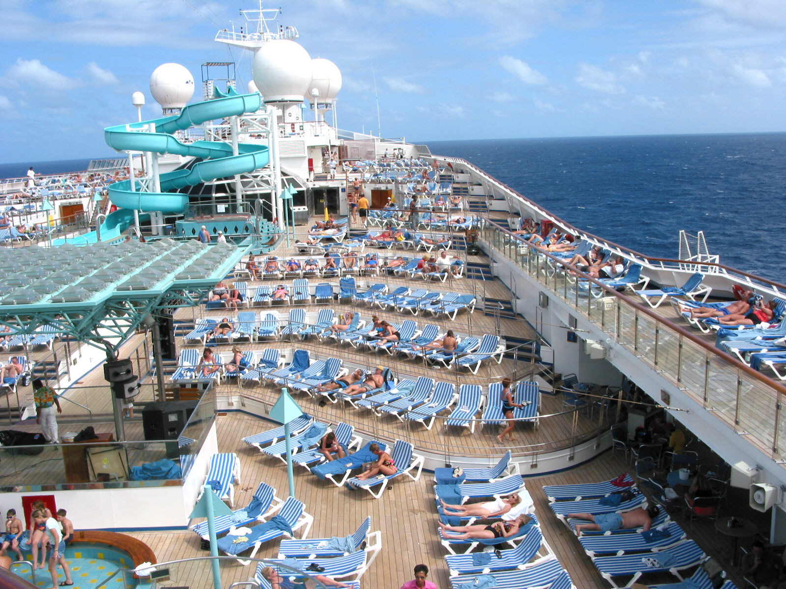 Adult’s Retreat – Carnival’s first three-deck-high Serenity adults-only retreat, an oasis of tranquillity offering plush chaise lounges and chairs, a whirlpool, a cascading waterfall, teak-planked decks, a pool, a complimentary dining area with freshly made salads that can be customized by guests, and, of course, magnificent sea views