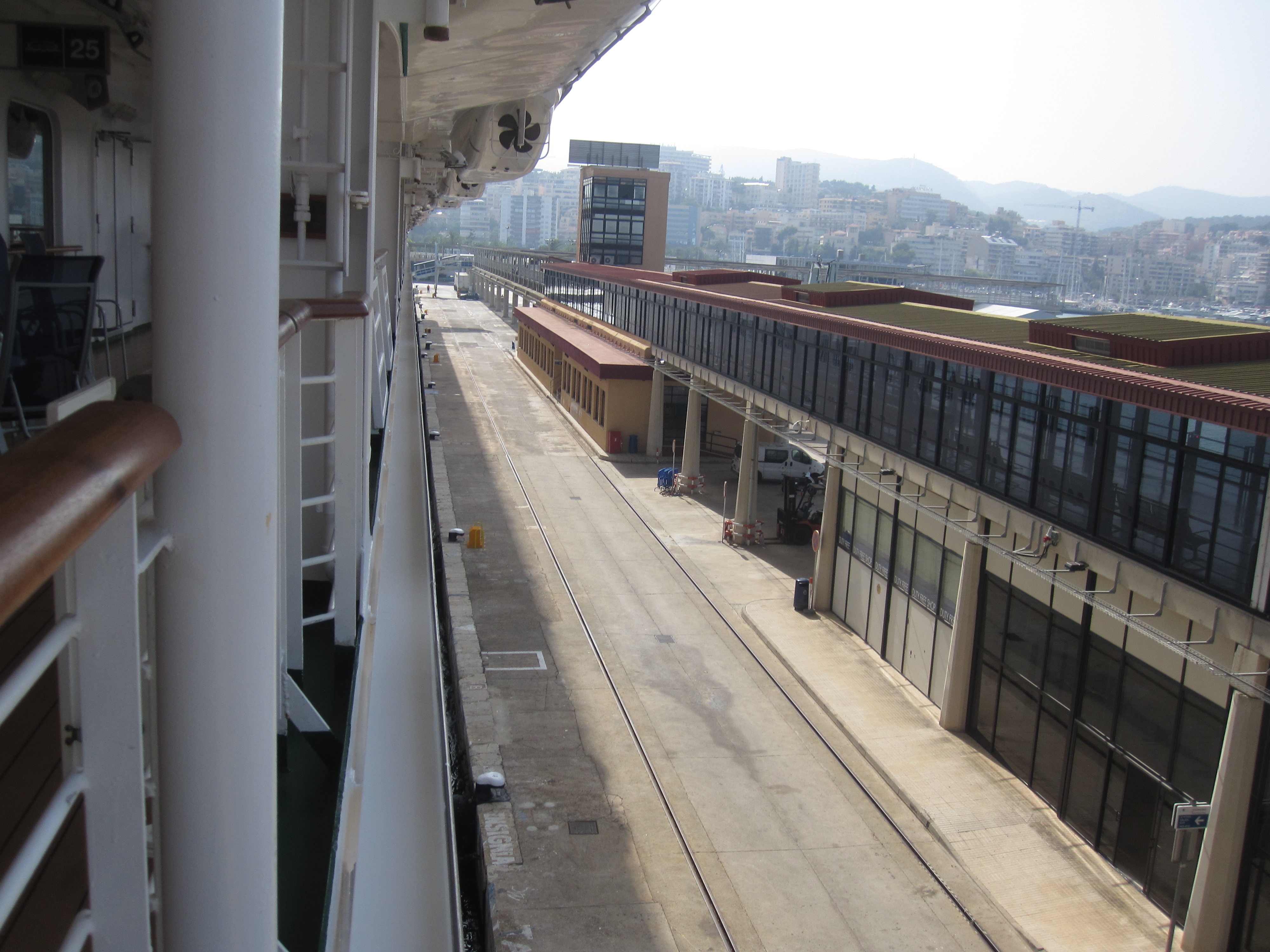Standing on deck 7, the ship is easing her way into her berth and its all go on the dockside. The guide lines are being thrown out to those waiting to tie her securely and the officers on the bridge are on their toes, as always, to ensure our docking is a smooth one. Will I ever get bored with this? I very much doubt it.