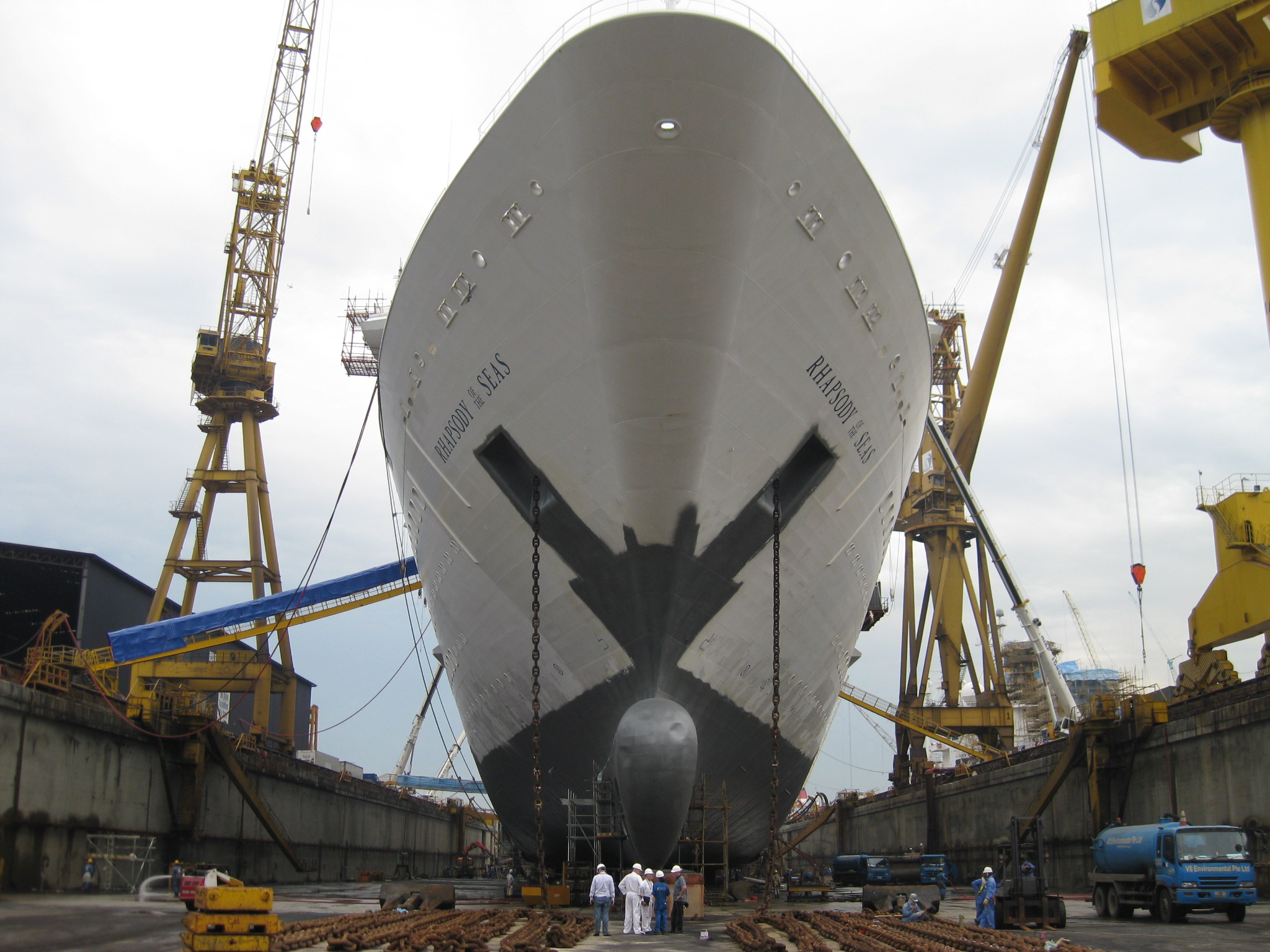 Royal Caribbean International’s Rhapsody of the Seas has undergone a month long $54 million dry dock refurbishment and she has arrived from Singapore’s Sembawang shipyard looking like a brand new ship.