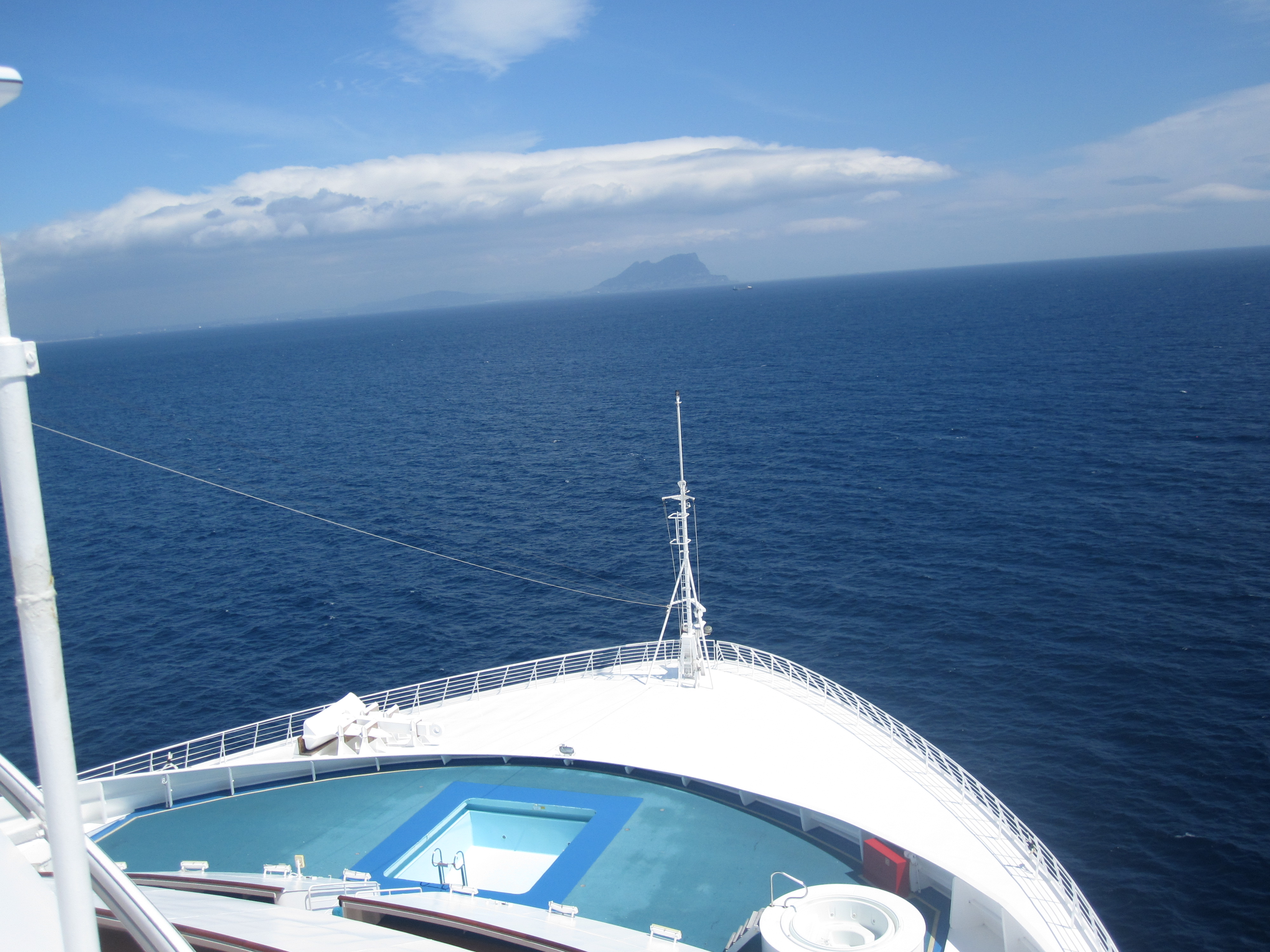 Day 3 we were heading for Gibraltar, we only had an afternoon call here anyway but we were running slightly late. Because of the weather the ship had slowed to just 14knotts so we were about an hour or so behind schedule, still, the sun was shining so everything was OK.
