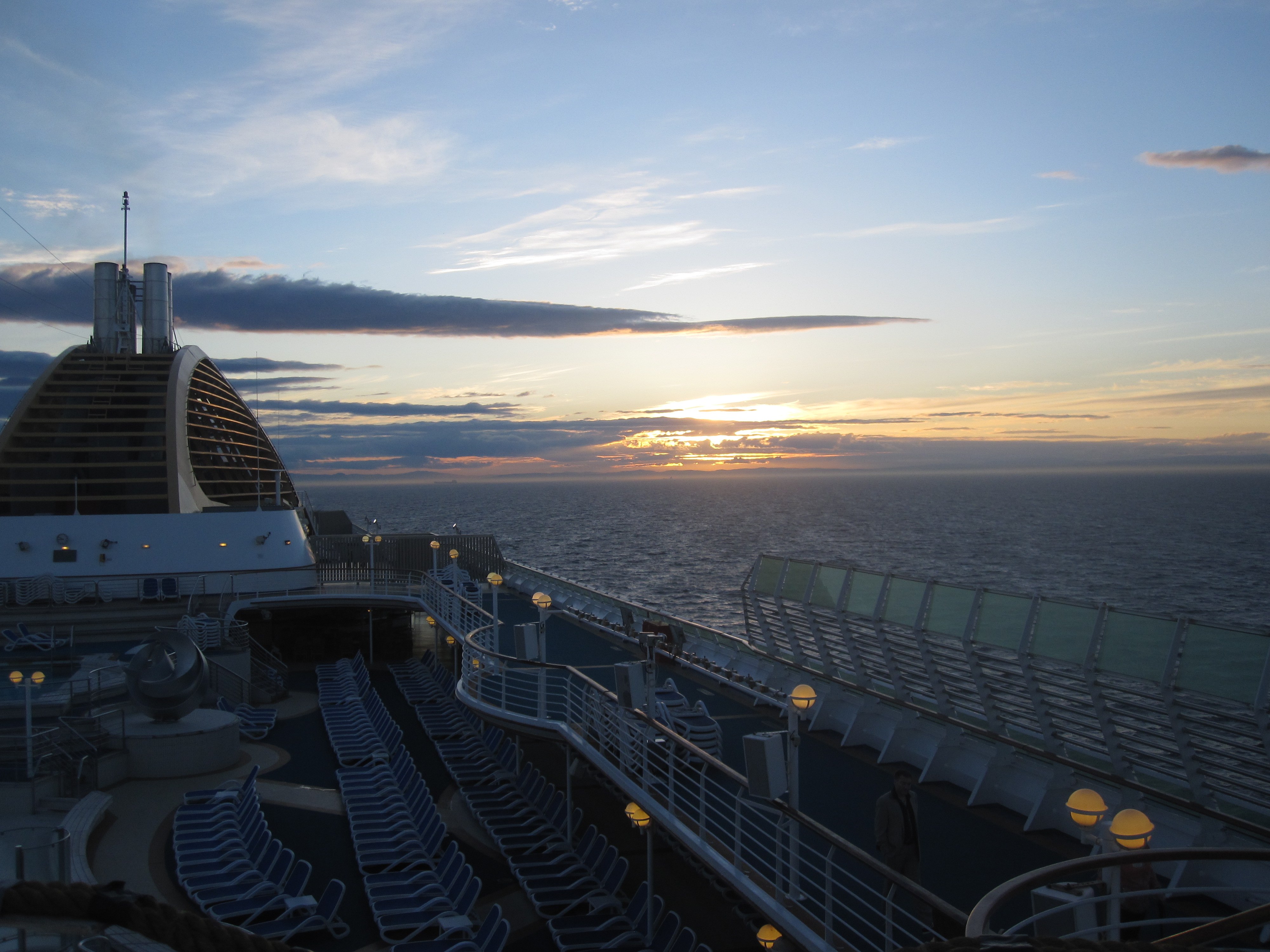 We left Gibraltar and headed back out into the open ocean, that night it was quite pleasant, the wind was still a little brisk but overall the outside temperature was ok. I decided to take an hour for myself and head up to the Pennant Bar on deck 15. I knew the bar itself would be closed and to be honest that’s why I like to sit up there. It is so quiet, very few people venture up there of an evening unless they are just having a quiet wander, like myself.
