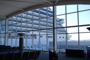 and there were plenty of spaces in the short term car park. After taking a few obligatory photos we headed in to the Ocean Terminal. Check-in was a quick and painless process and then it was time for a complimentary cup of tea. After about half an hour groups started to be called forward to board. Our guide took us through security and onto the ship.