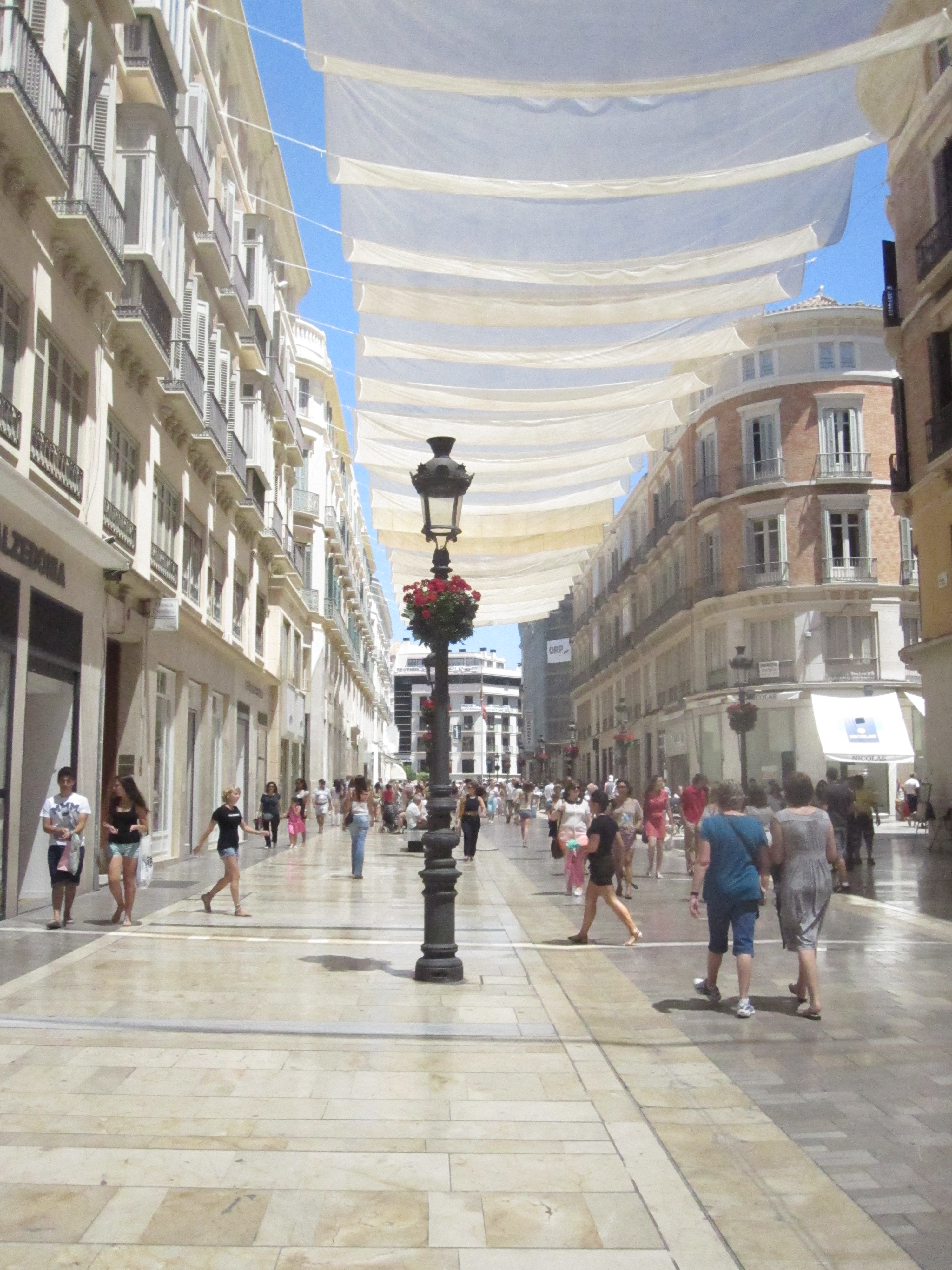 The shopping street was delicately covered with a material canopy, this keeping the suns
