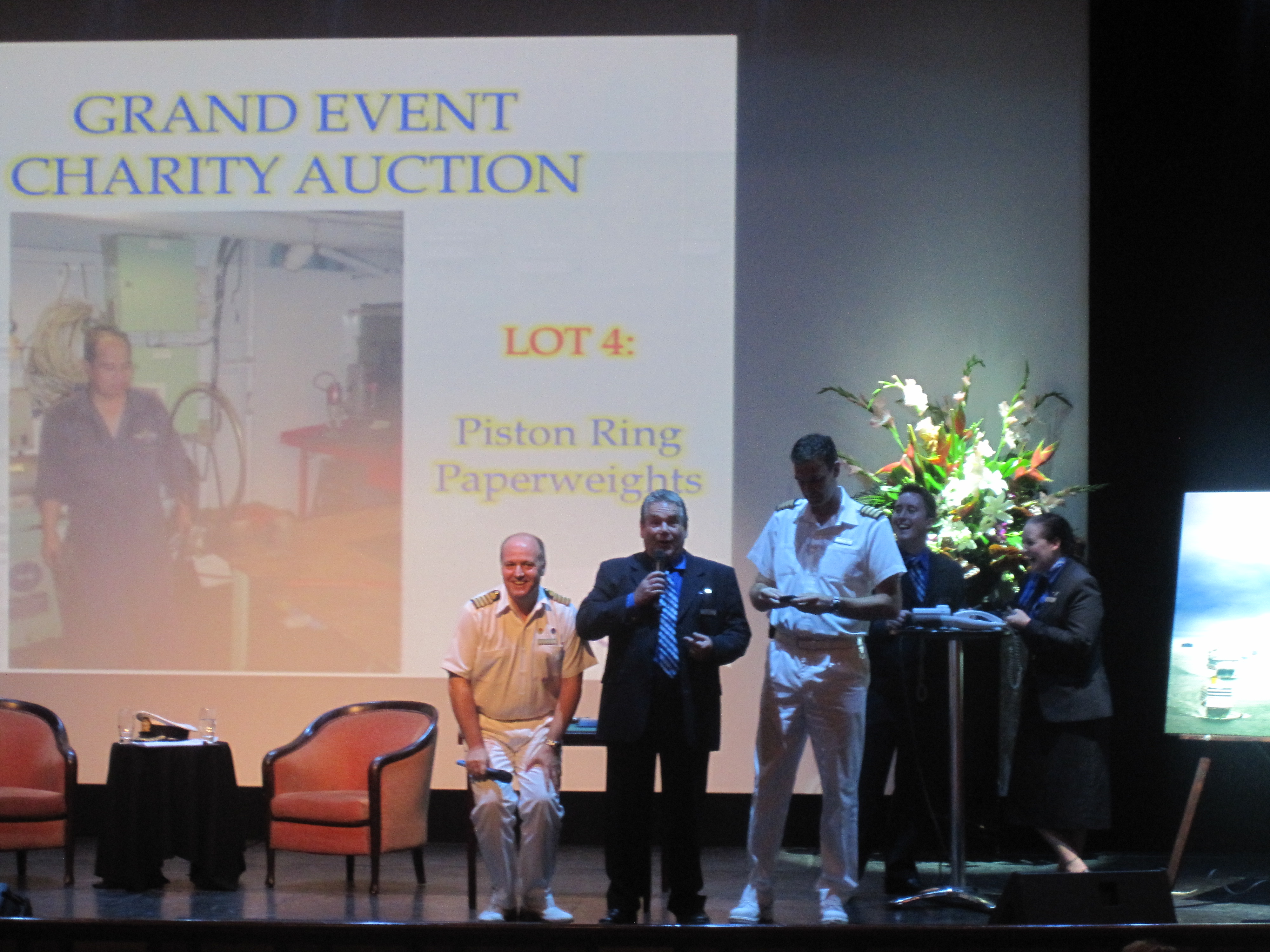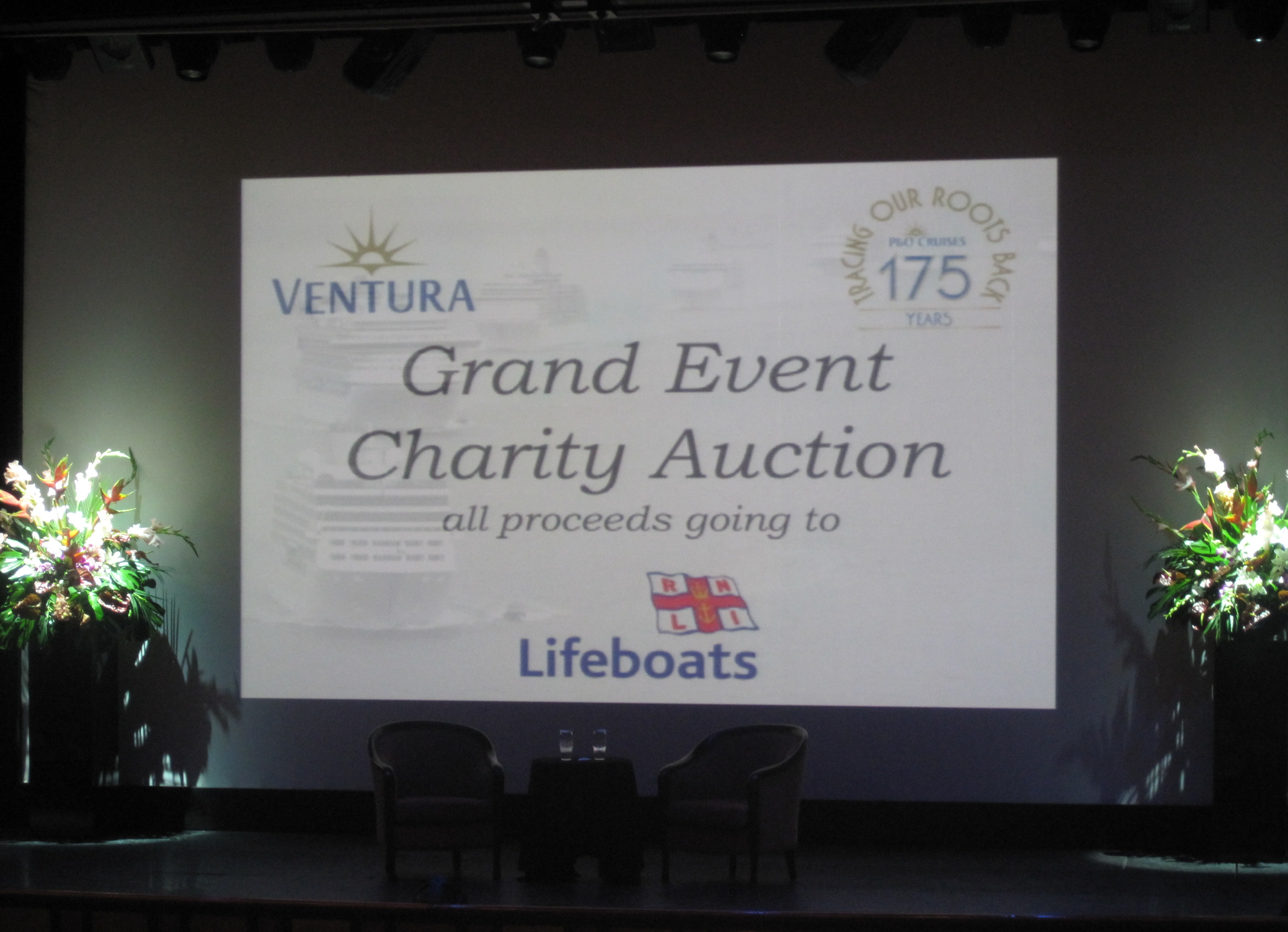 Other lots included the P&O house flag which, if I remember correctly, sold for ÂŁ1000. A visit to the engine control room, Grand Event flag, lifebuoy (which sold for over ÂŁ800 L ) and afternoon tea with the captain. In total this auction raised over ÂŁ9000 for the RNLI. I was astonished. It was a great idea and whether you bid on something or not it was a great hour to be a part of.
