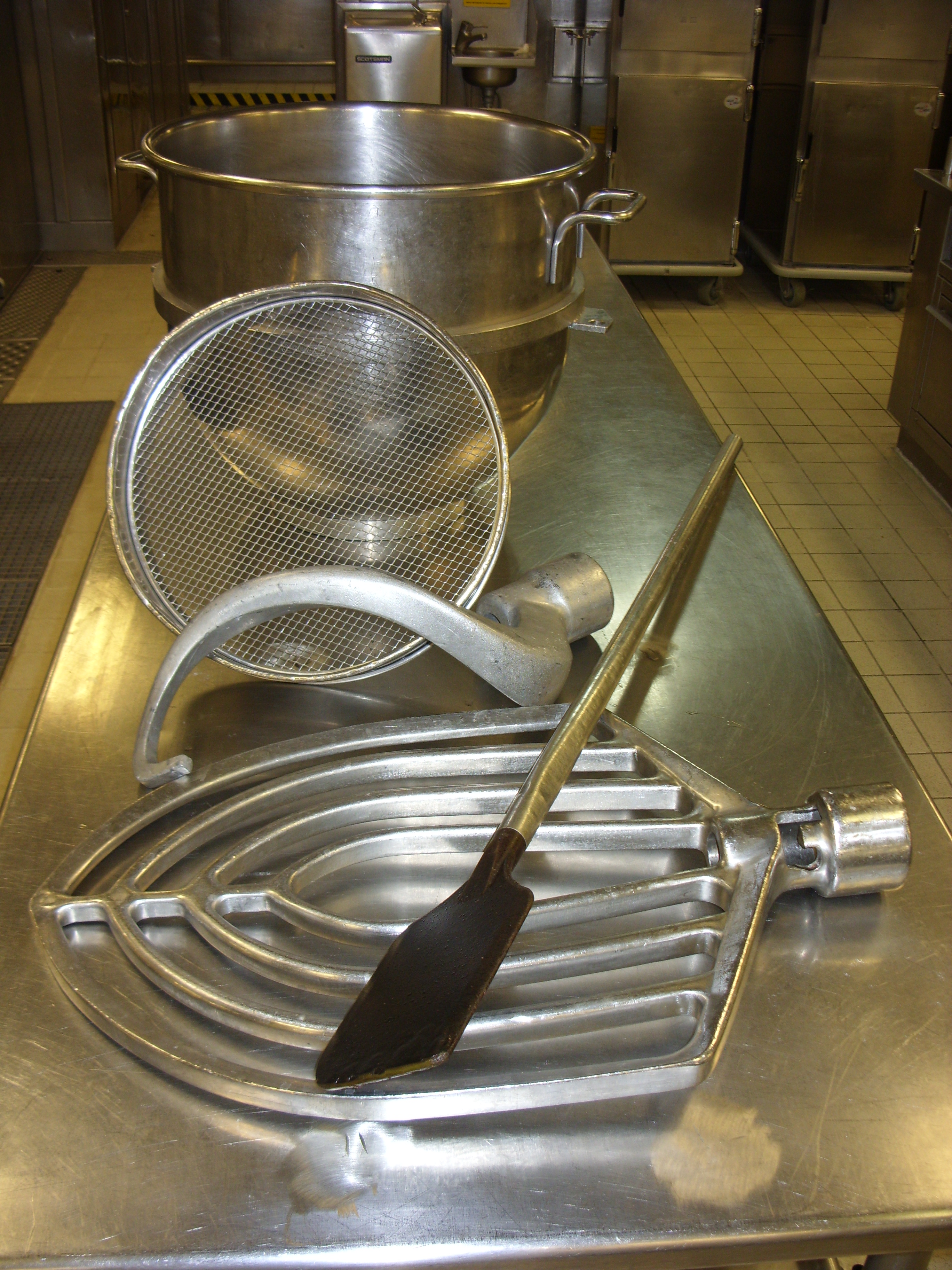 The Galley was next which again was an eye opener! How the Chef’s onboard do it really is beyond me but everything was gleaming! By now our Executive Purser had joined the group and picked up a few bits and pieces to show us including a dough hook which looked like an ancient battle tool and a whisk and bowl which would have been sufficient for the BFG himself.