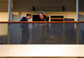My guess is they jumped,those balcony railings are to high to just fall over board. Unless they had too much to drink and were goofing around.