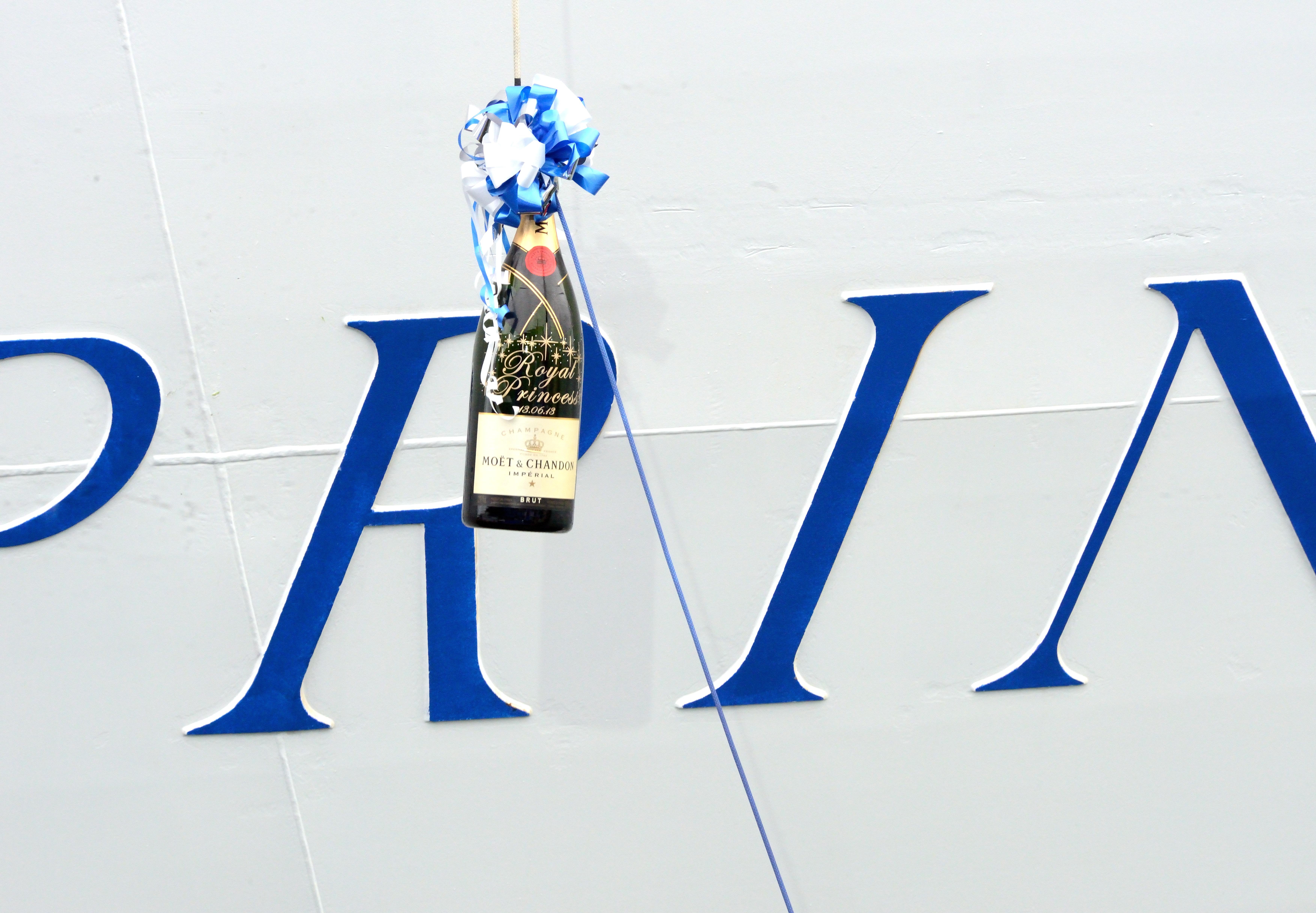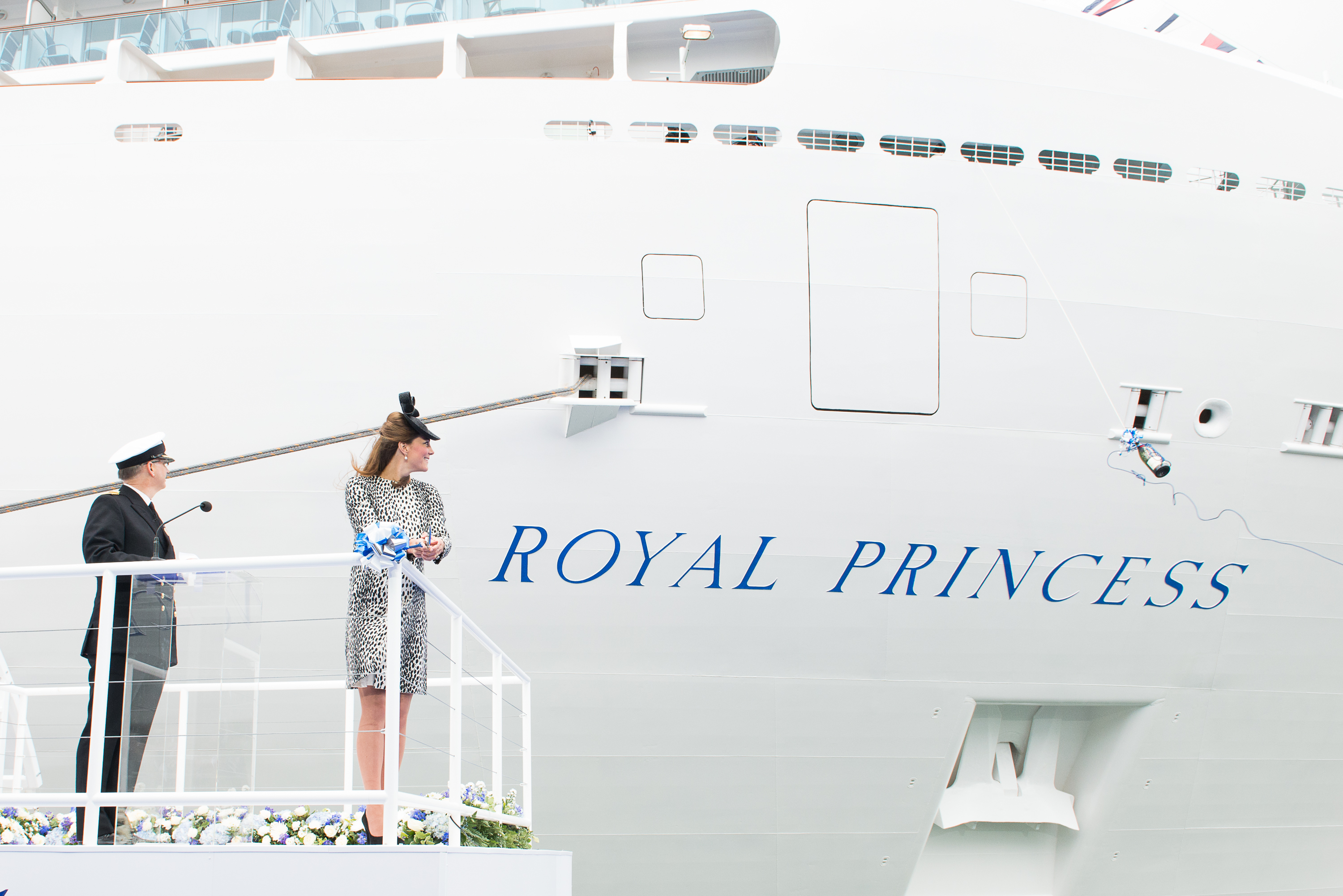 Standing on the naming platform with the ship’s Captain Tony Draper, The Duchess pronounced, “I name this ship Royal Princess. May God bless her and all who sail in her.” She then cut the rope that sent a giant Nebuchadnezzar-size bottle of Moët & Chandon champagne toward the ship, officially welcoming Royal Princess into the fleet of Princess Cruises, one of the world’s largest international cruise lines.