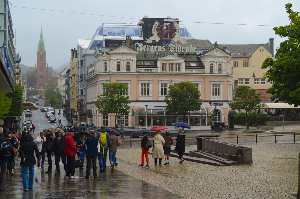 The weather got steadily worse throughout the day as we made our way up the North Sea. By dinner time it was quite rough and very Bergen-Norway-Cruisewindy. Getting ready for formal night was interesting to say the least, swaying around the cabin and barely able to stand in the shower! Unfortunately my wife had forgotten to take her sea sickness tablets and that lead to us cutting dinner short to get some fresh air sat out in the solarium in all our finest clobber.