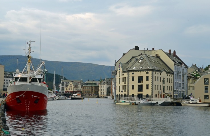 When we woke the following morning we found ourselves already in Alesund and had barely noticed the ship coming alongside. The town itself was right outside our window. Neither the weather nor the scenery were as amazing as the previous two mornings, but Alesund looked quaint so we decided to get off for a quick look around.