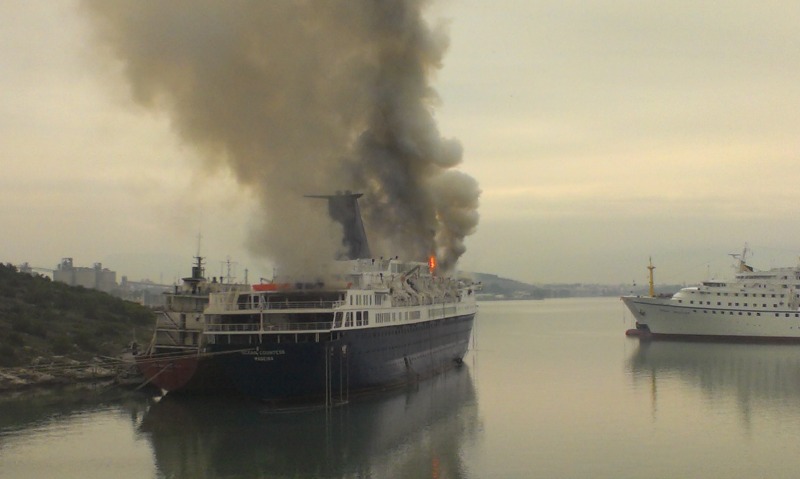 Ocean-Countess-on-fireThe pictures that have emerged recently of the lovely Ocean Countess drowning in a thick grey smoke as the flames engulf her are awful. If you think of the love, life and energy that was once contained within her as passengers sailed around the world – it’s actually quite sad!