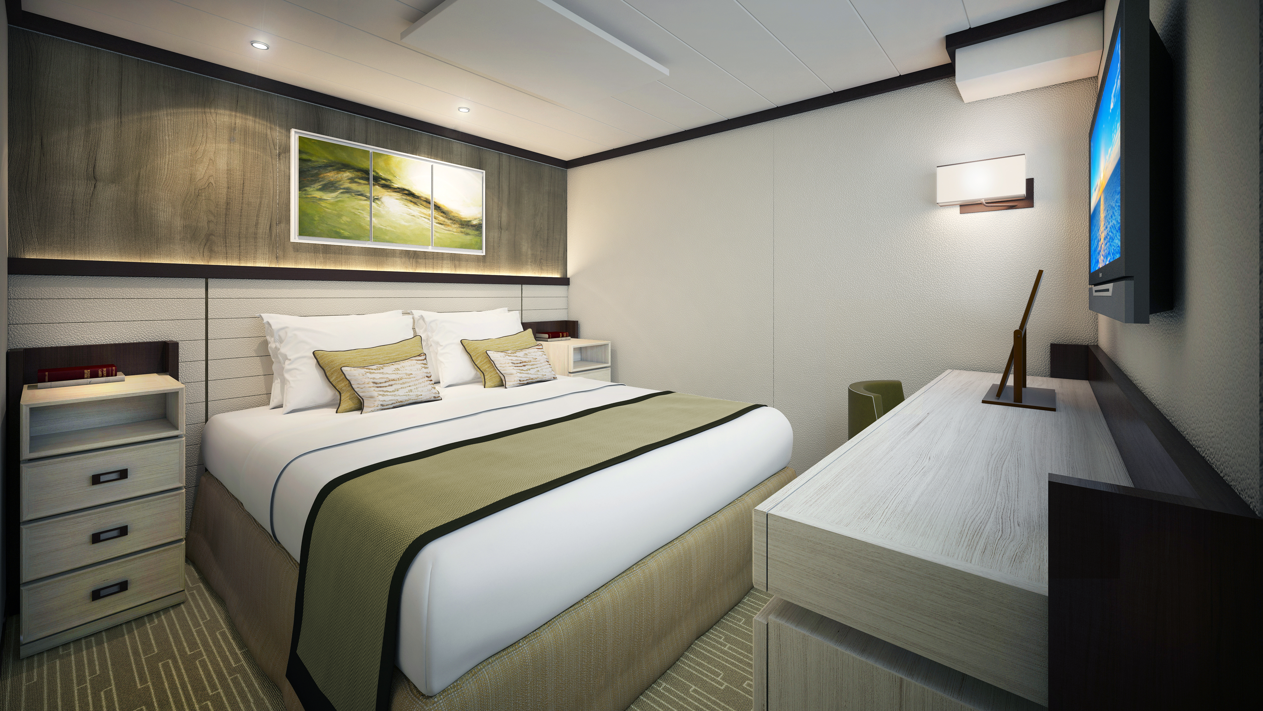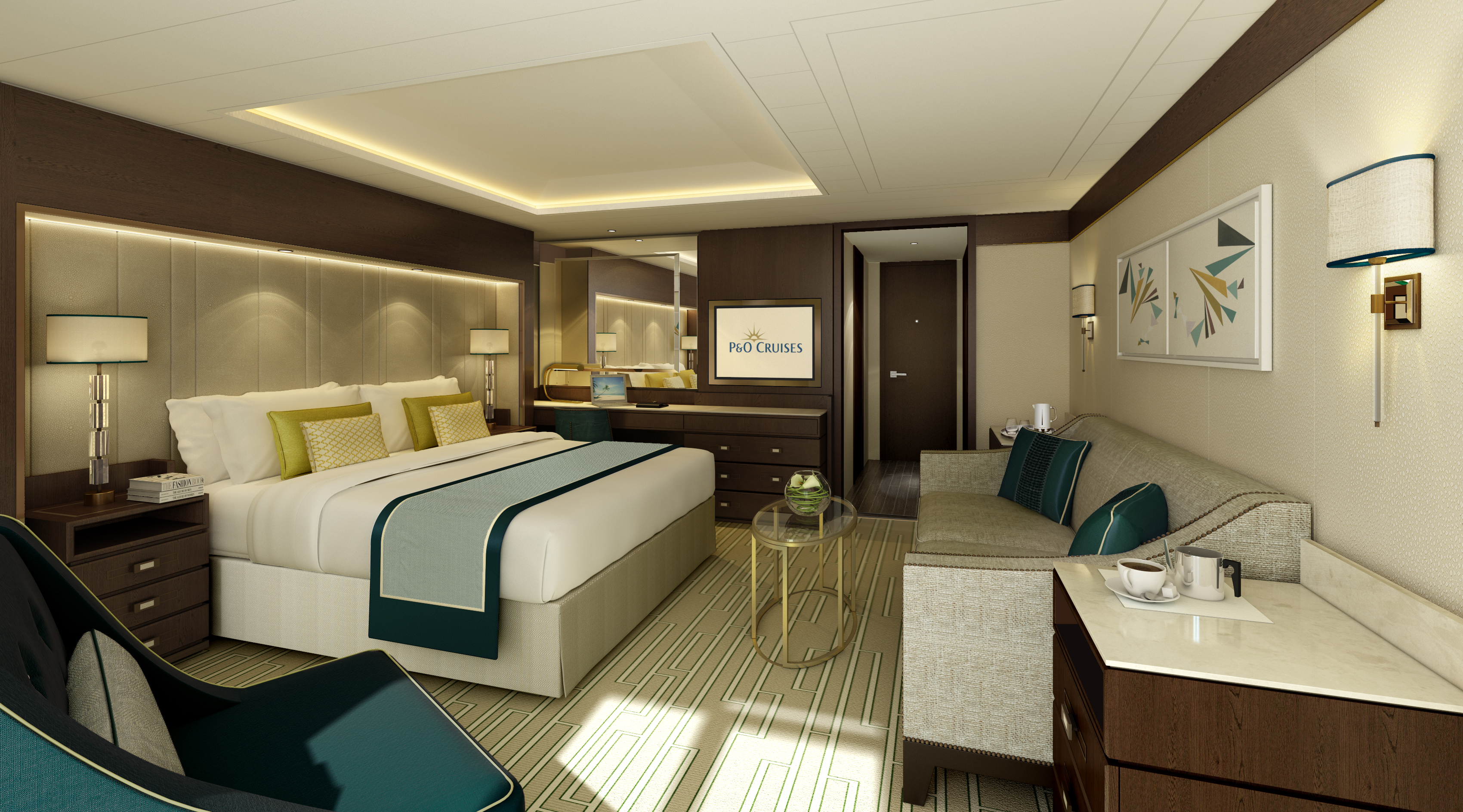 Great photos – so light & bright yet keeping a very ‘traditional’ feel – no gimmicks – it’ll stand the test of time….tasteful. Only negative I noticed – Junior suite – why is the TV on the dresser wall & not opposite the foot of the bed – bad design there..! Looks like a fab ship though, when does she hit sea-trials?