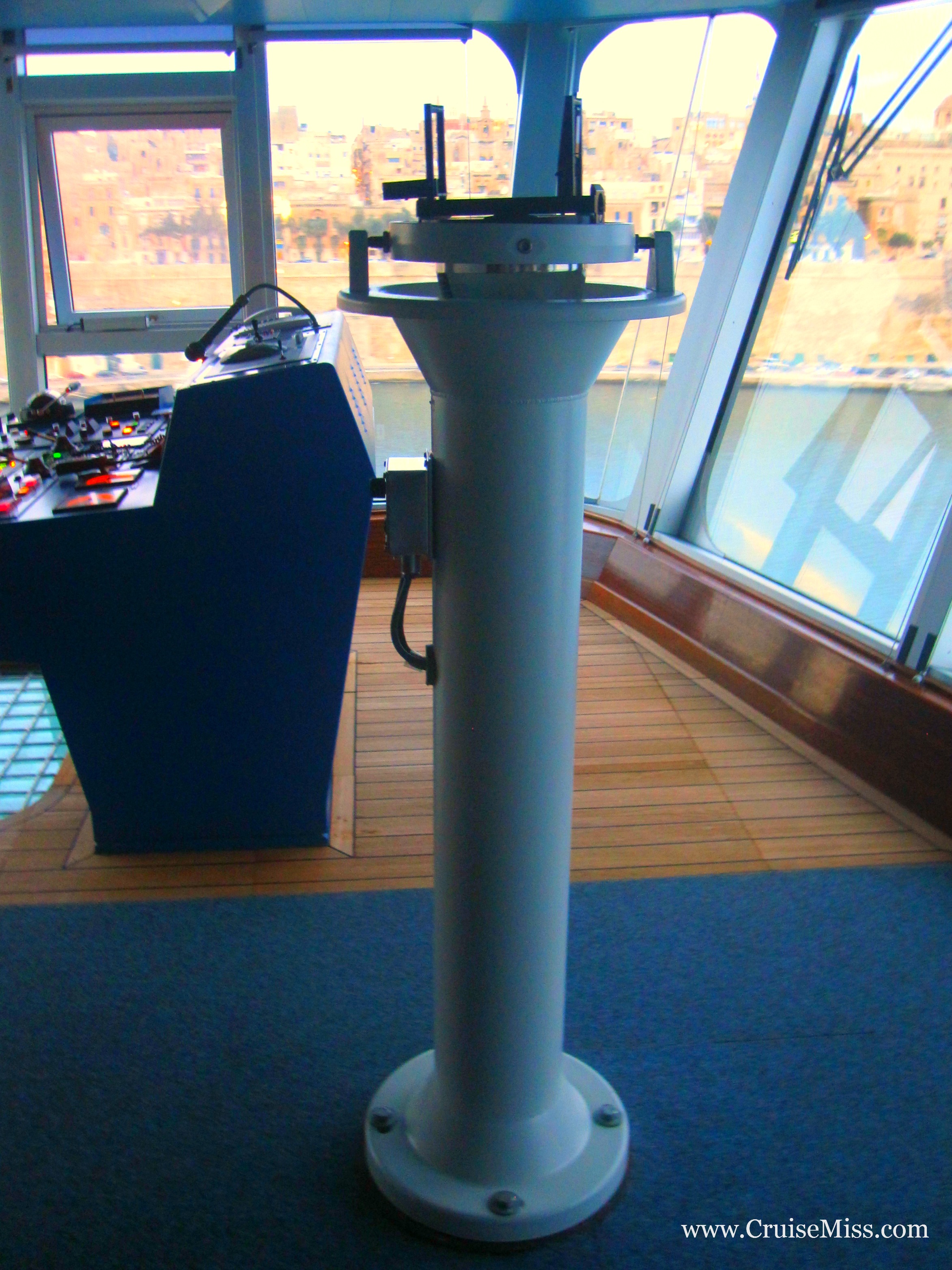 The ships compass is one of the most important pieces of navigational equipment onboard. There are 2 types of compass aboard most cruise ships, a Magnetic Compass and a Gyro Compass.