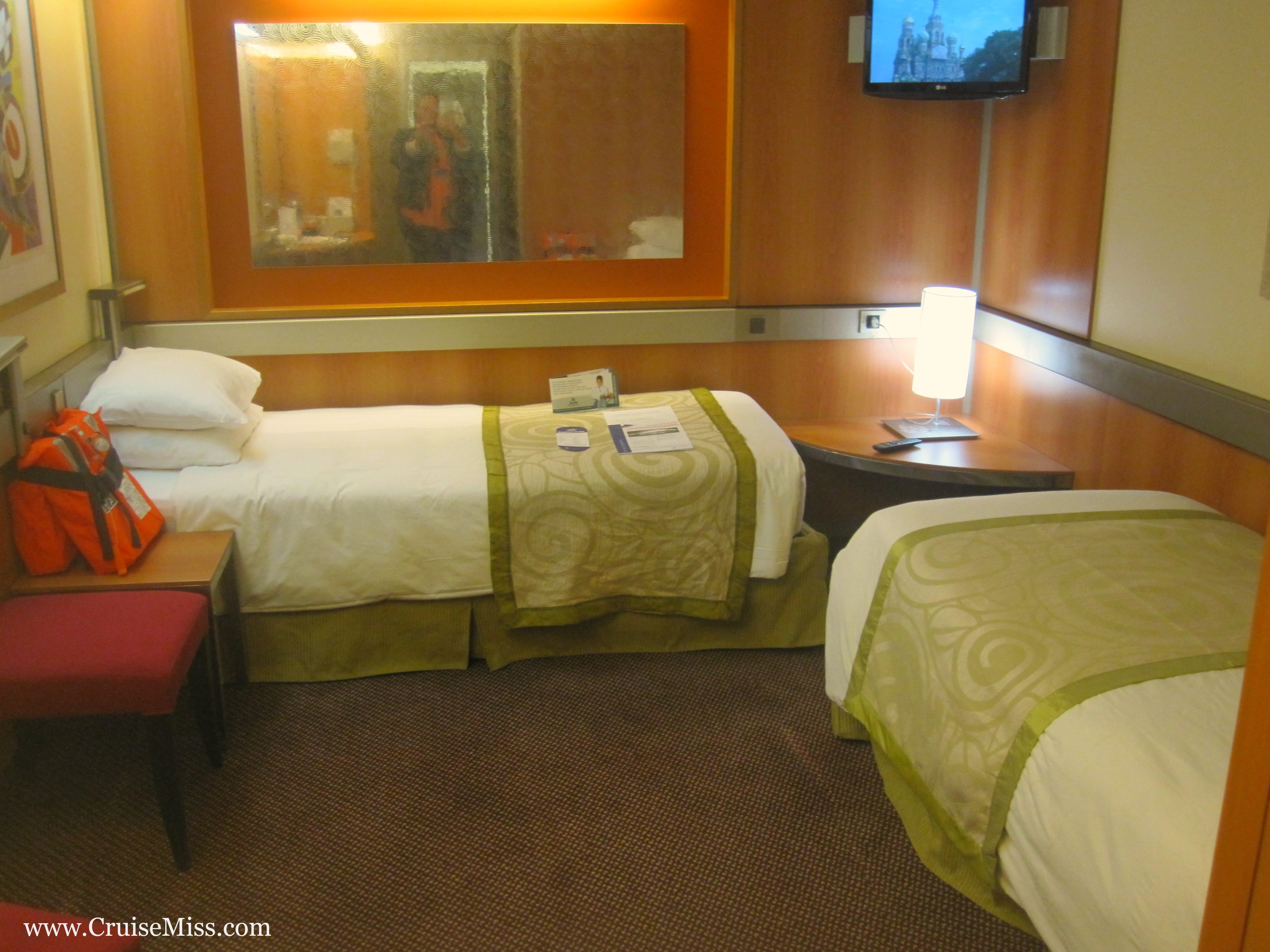 I started with an inside cabin and what a surprise it was! Much bigger than I was expecting and the décor was rather pleasant too. The outside cabins were more or less the same size as the inside and there wasn’t much, if any, size variation per deck. The suites were a step up and I instantly liked what I was seeing. The colour scheme throughout was very tasteful, there were large flat-screen TV’s on the walls, the bathrooms were wide and tiled, with some offering full size Jacuzzi tubs, and balcony sizes were quite good too – it felt like a very modern ship, even though she is coming up to her 30th birthday. There was bottled water and a few little nibbles in the cabins, but suite guests were also showered with champagne, fresh fruit and canapes. I also liked the light features that adorned the walls behind the beds in the suites, I bet they look very pretty in the evening with the lights turned off.