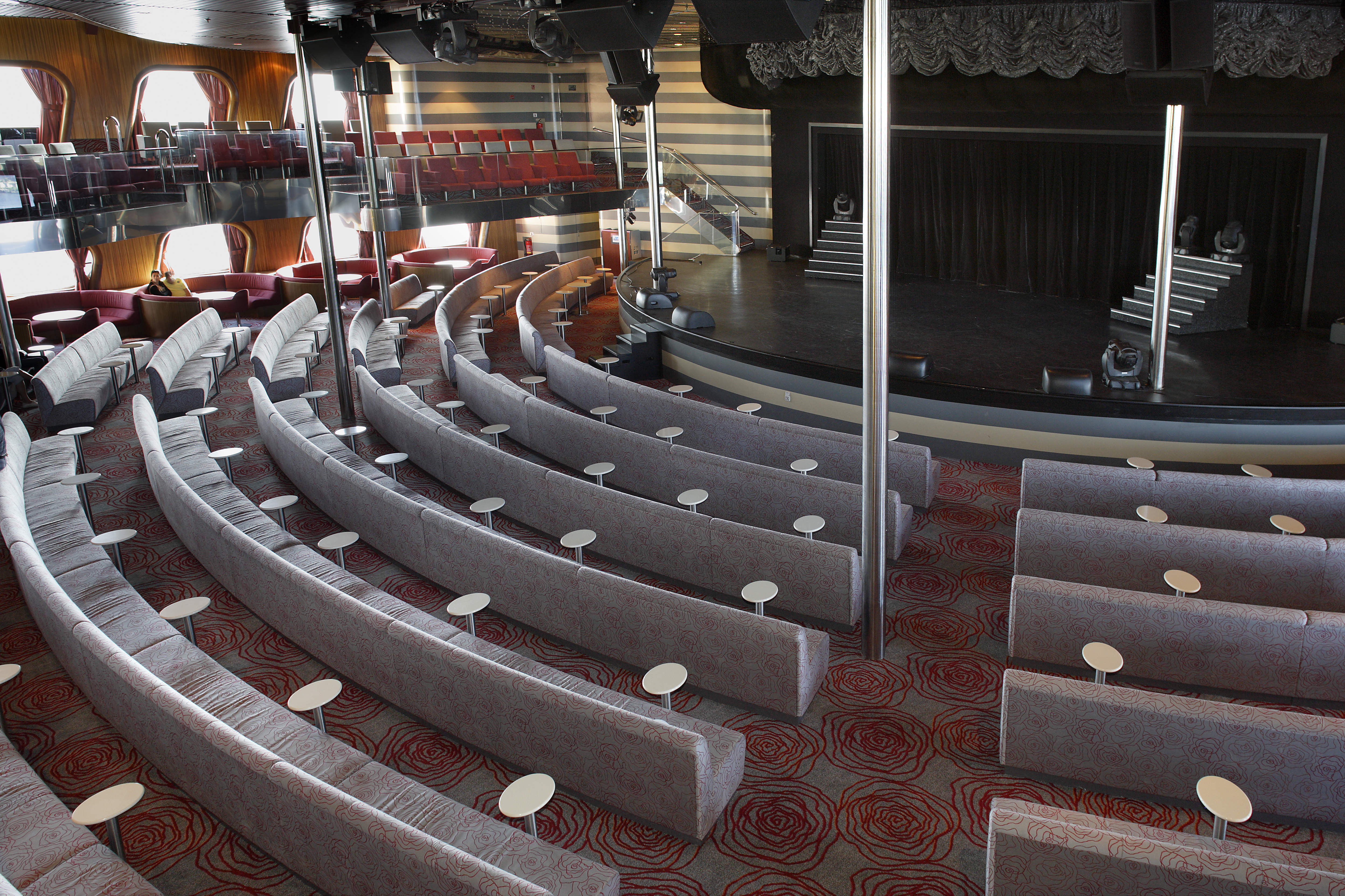The Show Lounge on Deck 9 was in use during my visit, passengers were watching a movie, so I couldn’t see it in full light but it was a massive space. Given the size of Magellan, I hadn’t quite expected her main lounge to be so vast. I “borrowed” an image from CMV to show you what it looks like with the lights on. This image was actually taken from where I was standing when I first walked in, which was on the deck above what you can see in the image and several rows deep with seating. Hopefully that gives you an idea of the size.