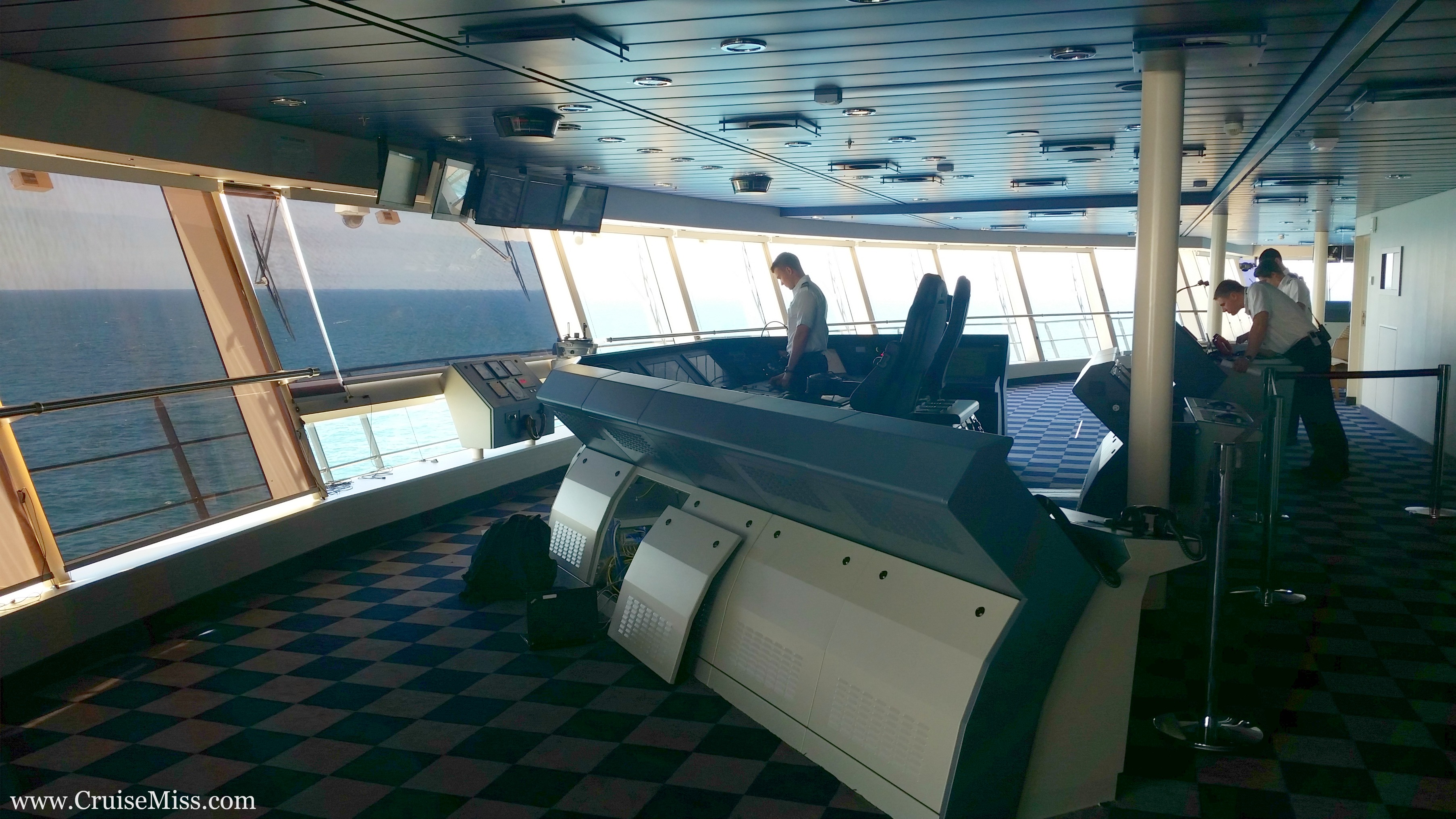 Day two began with more exploration and a visit to the bridge. I had to have my favourite place fix, it was inevitable it would happen at some point. It wasn’t disappointing – the bridge never is – and it even offered a few new experiences. Behind the bridge central console area was a Control Centre. It had small rooms either side which displayed images from the security cameras onboard (of which there are over 1,200) and right in the middle a long thin table which housed detailed plans of every single deck onboard the ship. The officer telling us about this particular area joked that it made a great air hockey table. I could totally see where he was coming from!