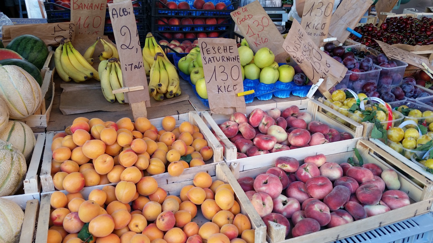 Livorno was our next port of call and I had decided to just explore the town instead of going on tour. I have been to Pisa before and would like to visit Florence one day, but at a slightly cooler time of year. The last time I went into Livorno town centre it poured with rain all day and aside from the supermarket and a few restaurants, everything was closed. I left the ship and hopped on the shuttle bus in time for the shops opening. It was another hot day but we had a cooling sea breeze – perfect weather for wandering around town. I didn’t buy much, just a pair of shoes, but my friend and I did stop at Il Ventaglio Pizzeria for pizza and a drink. I had lunch at the very same place a few years ago and decided it had to be done again. The pizza is fresh, the staff are a lovely bunch and the prices are very reasonable: 3 euro for 3 square shaped slices of Margarita and a drink. I had Pepperoni on my pizza though so mine was 3.50. The restaurant is on the main shopping street, you can’t miss it. There was also a massive market in the centre of the city selling fresh fish, vegetables and fruits, and various items of clothing. I had a walk around for a little while and popped my head in the indoor market. If you visit then check to see if it is on or not because it is definitely worth having a look around. After lunch I made my way back to the ship, got changed and enjoyed a few hours on deck in the sunshine.