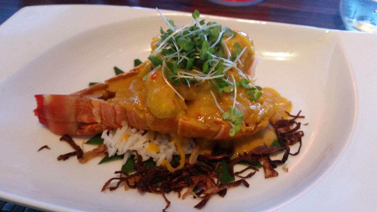 Last night I dined in East to West again and for main course this time I decided to try the lobster – it was INCREDIBLE! I only recently started eating lobster, but have tried it several different ways and with various sauces but the one I had last night – infused with lemon grass, coconut milk, mango and saffron – was by far the best! I will be going back for more before this cruise comes to an end.