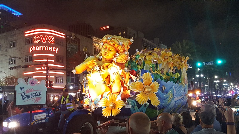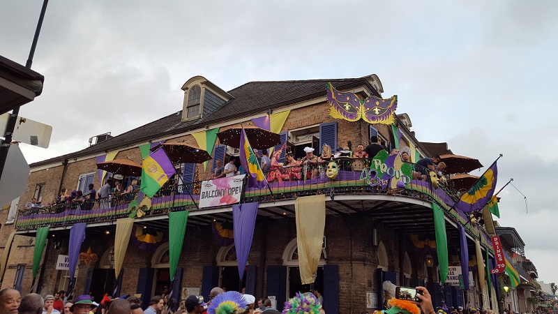 Finally, the day we had been waiting for arrived: Fat Tuesday as it’s known. We left the ship before 08:00 and walked up Julia Street until we came to St Charles. We turned right and walked a few more blocks before settling in place for the parades. The section of street where we decided to pitch was also where Balmoral’s passengers would sit on the organised excursion (across the street), but they had stands and toilet access, unlike us – I guess sometimes an excursion ticket really does come in useful! The atmosphere was incredible and everyone was having a good time. There were a few locals that thought they owned the sidewalk, one woman in particular was bossing people around as if she held the key to the city, but my friend and I managed to remain in place. We had travelled half way around the world for Mardi Gras, we were not moving!