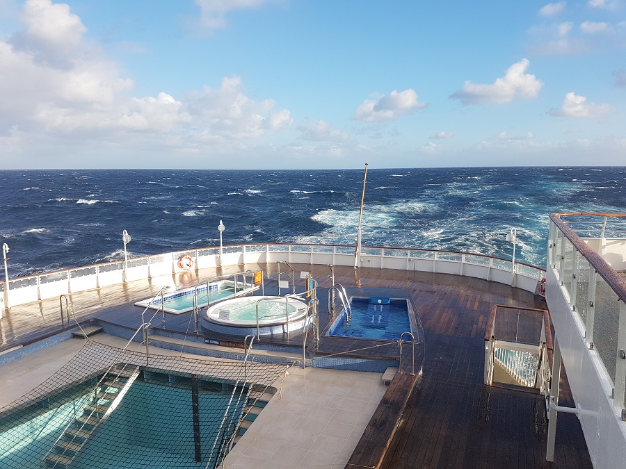Our first few days were spent at sea, battling the rough weather and simply enjoying the onboard atmosphere. I bumped into passengers and crew that I have met on previous cruises and the overall vibe was good – everyone was excited to be beginning such an epic journey. Marian and I enjoyed drinks in the bar, we joined in on a few quizzes and we spent most of one day playing Escape Room games on my phone. Basically, we took it easy and simply relaxed into the cruise. When you spend most of your life rushing around, it’s nice to have some time to sit and do nothing. It’s also good to have a little flutter on the roulette wheel and leave with more chips than when you started, although I suspect by the end of today, we’ll both be back to where we started.
