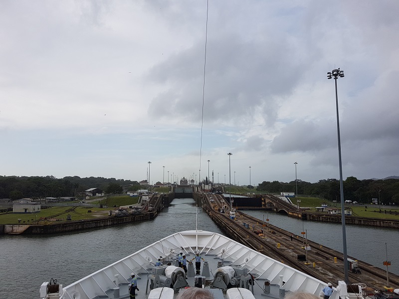 Our next exciting day was spent transiting the Panama Canal and what an experience it was. I’d previously enjoyed a partial transit, but I was itching to find out what else there was to see as we made our way out of the Gatun Locks, into the lagoon and onto the next sections: Miraflores Locks and the Pedro Miguel Locks. The day was perfect. I spent the morning trying to spot crocodiles, but they were obviously hiding beneath the waters surface as it was incredibly hot. We sailed under bridges, we passed a rehabilitation centre where the inmates were cheering and whistling at us and we had incredible views across Panama City as we exited the canal system. It was one of those experiences where you don’t want to leave the open decks, just in case you miss something. We had a local man onboard for the entire transit and he gave us updates and info throughout the day. The Panama Canal connects the Atlantic Ocean with the Pacific Ocean and our transit took approx. 8 hours.