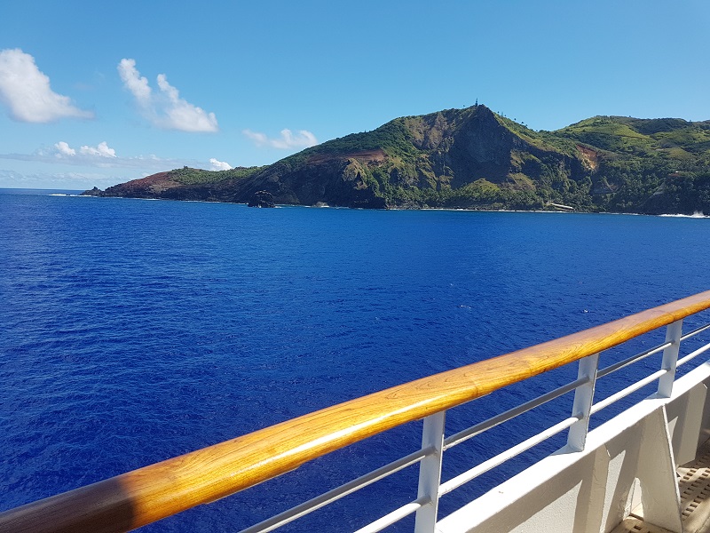 We sailed by Pitcairn Island on the 9th and it was a beautiful day. We’d all just assumed we were sailing by and continuing on our way, but no. We stopped close to the island and several islanders came across to us with bags full of local arts and crafts. They boarded the ship and set up stalls on the aft deck. It was a nice treat for us all, we hadn’t expected a market on the deck or the talk about the island that then followed. We were incredibly lucky. The Pitcairn Islands are a group of volcanic islands that form the last British Overseas Territory in the South Pacific, the only inhabited island is Pitcairn. Pitcairn is the least populous national jurisdiction in the world, approx 50 people currently live there. I met one gentleman who was the islands doctor, vet and dentist. It was fascinating and the people seemed very happy living there, but it’s very remote. They get supplies every quarter and I understand that the only livestock they keep on the island are goats and chickens.