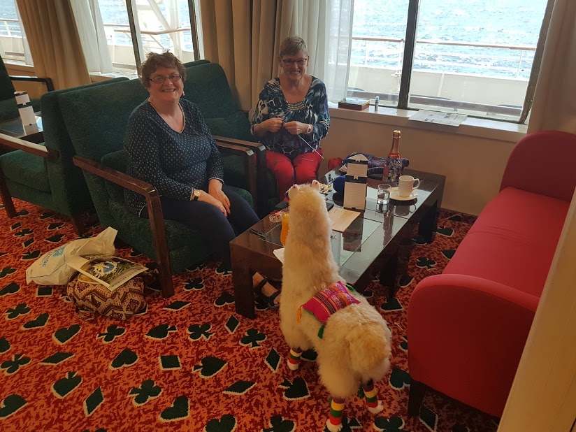 Marian and I had a magnetic cat on our cabin door, she would hold the ‘Do Not Disturb’ sign and she went all over the ship, from cabin to cabin. I’d take her to visit people, she especially liked being with Eve and Fiona. She’d return home a day or two later with a note attached to her tail. No, we weren’t mad, but this is life on such a long sailing and when you get to know people. It’s all just a bit of fun. I’d met Eve on Balmoral last year, so I would wind her up on a daily basis. There was no getting away from me! 😉