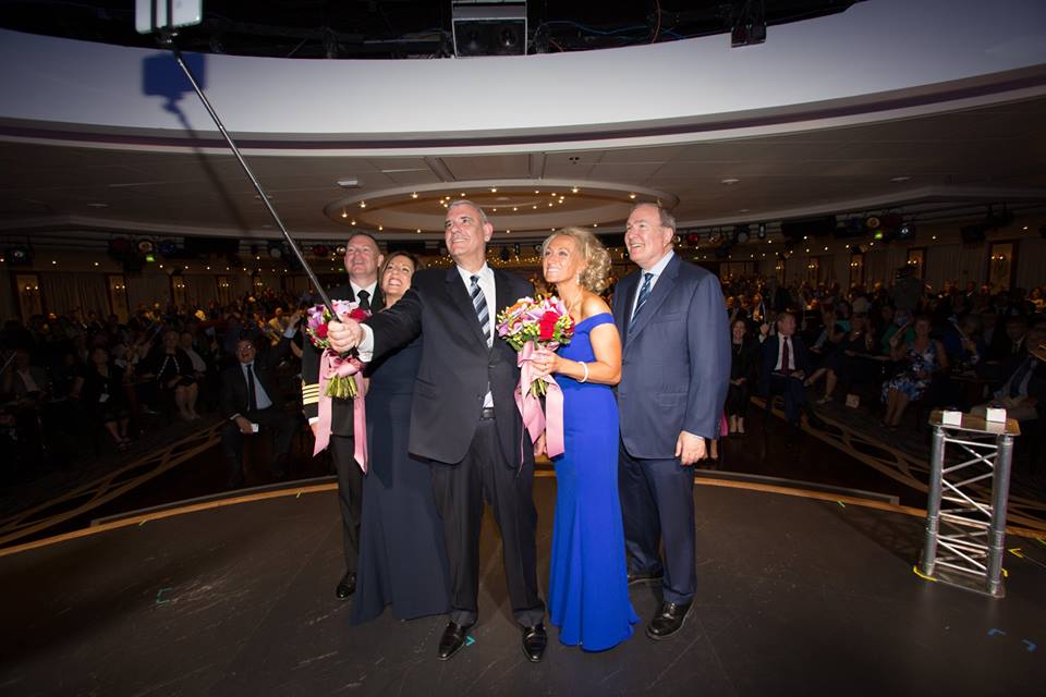 I took my seat at the back of the Cabaret Lounge and soon the ceremony began. There were appearances and short talks from Richard D Fain (Chairman and CEO Royal Caribbean Cruises Ltd) and Larry Pimentel (President & CEO Azamara Club Cruises). A superb show from the Reading Scottish Pipe Band followed and then, before Azamara Pursuit’s godmothers officially named her, blessings from Reverend Canon Andrew David Gibson Wright and Rabbi Maurice Michaels. As we neared the end of the ceremony, Lucy Huxley and Ellen Asmodeo-Giglio both stepped forward and officially named the ship. We all jumped from the thud as the bottles hit the hull and exploded, and then the entire room celebrated. It was such a huge privilege to be there. *The below images of the ceremony are credited to Azamara Club Cruises and the video of the ceremony can be viewed on YouTube.