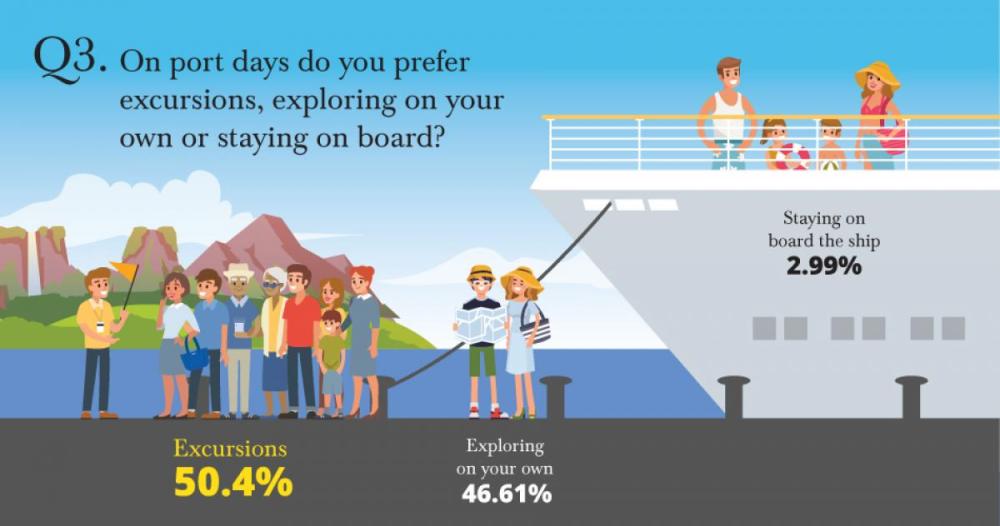 Of course, excursions came out on top but only very slightly. 50.4% of people prefer to take an organised excursion, but surprisingly 46.61% of people prefer to explore independently. Personally, I enjoy a bit of both. If it’s a long tour, I’ll often book something through the cruise line. If the ship is in the same port for longer than 1 day, I’ll likely book something with a local guide that leads on into the evening. I always want to get the most out of every place that I visit.