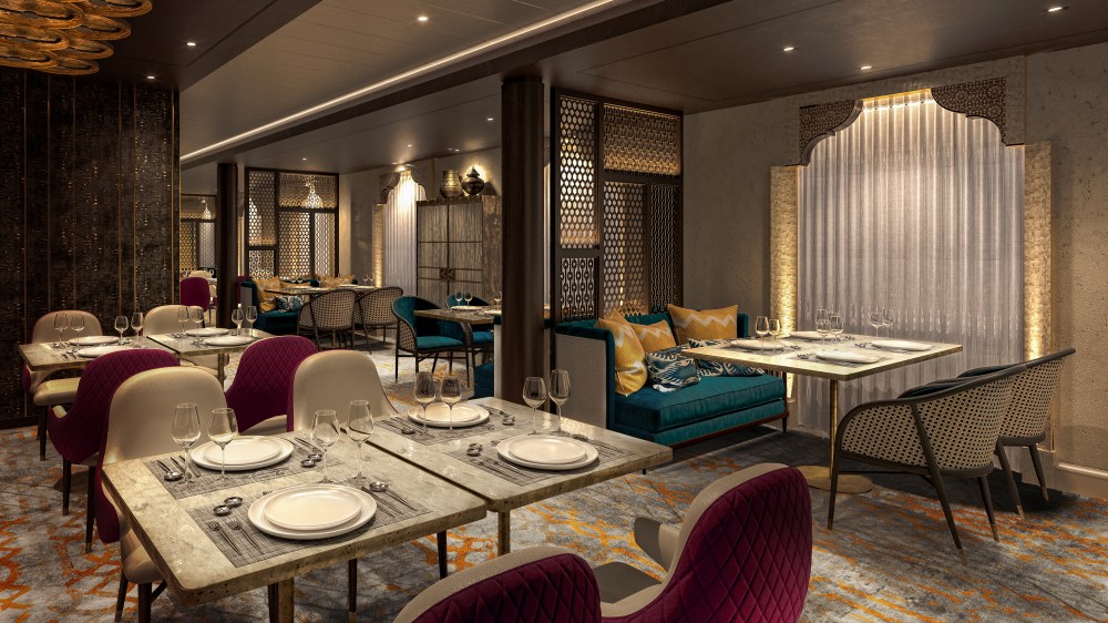 New artist’s impressions of Saga Cruises’ second new ship Spirit of Adventure which launches in summer 2020 reveal a confident, bold and adventurous style – with a selection of speciality restaurants including Khukuri House, a restaurant serving a modern take on traditional Nepalese cuisine that has been inspired by Gurkha heritage.