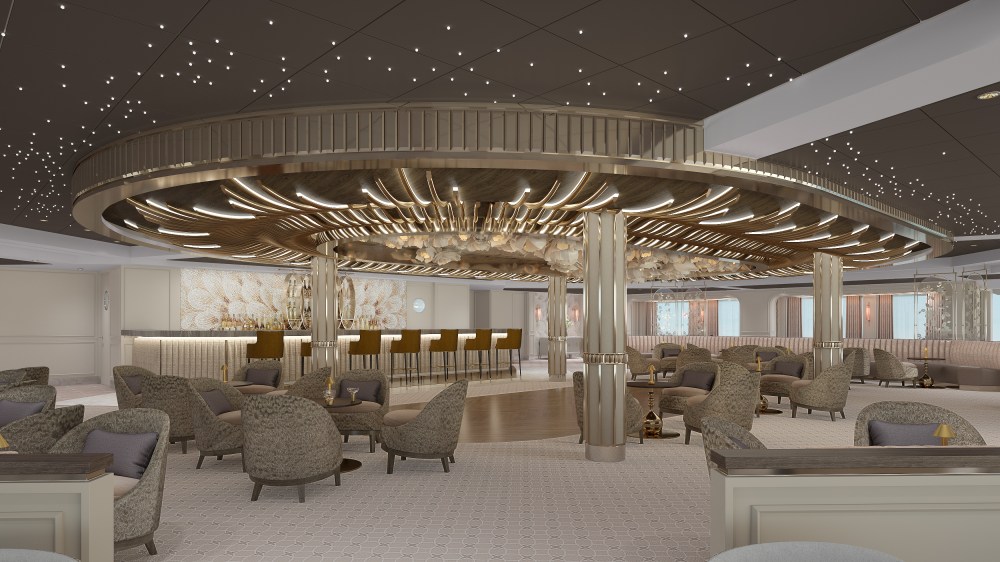 In addition to suite designs, Regent has also announced the interior design of the Observation Lounge on board Seven Seas Splendor. The Observation Lounge inspires the feeling of an enchanting English garden. Incorporating a light and airy colour palette, the Observation Lounge’s centrepiece is a unique and stunning whimsical chandelier comprised of hand-painted porcelain flowers, peonies and roses. Traditional English architectural moulding adorns the walls and are coloured in neutral hues to create a contemporary, elegant setting. The furniture adds to the tranquil nature of the space through its soft curved forms and lush upholsteries inspired by the fluid forms of flower petals. Specially commissioned art by Gorman Studios incorporates hand-painted English roses and flowers on glass screens to reflect the look of porcelain chandeliers.