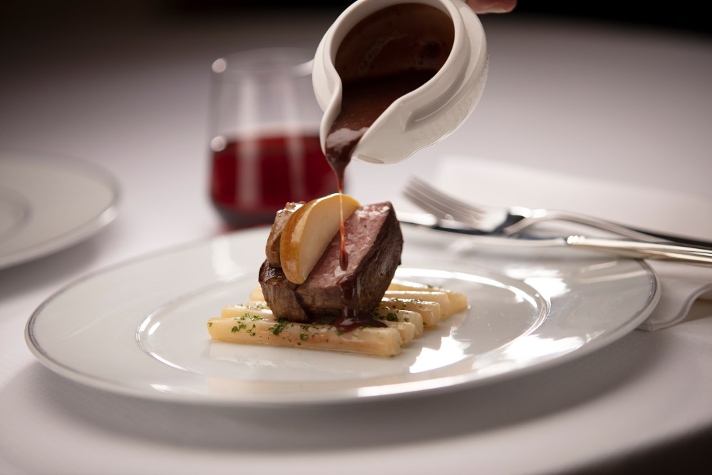 Handsomely decorated with inspired uses of glass, metal and marble, Prime 7 personifies luxury at every turn. This intimate and elegant steakhouse exudes glamour and elevates the classic American fare to new heights. The mouth-watering prime New York strip, porterhouse and succulent filet mignon are always aged perfectly while some new dishes re-imagine the ocean’s offerings with sophistication and panache. New at Prime 7 on Seven Seas Splendor are Applewood Smoked Salmon Steak, with Asparagus, Tamarind-Whiskey Sauce; Seared Diver Scallop and Cured Pork Belly Confit with Orange Pomegranate Sauce; and Hamachi Ceviche.