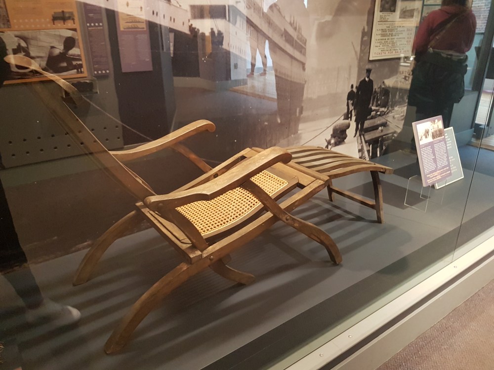 The exhibit is on the second floor and features the largest collection of Titanic artefacts in the world, including a chopping board, deck chair, a balustrade from the D Deck landing on the forward staircase, a section from the ships’ grand staircase, a lifejacket fragment reportedly worn by John Jacob Astor, and a wooden cabinet.