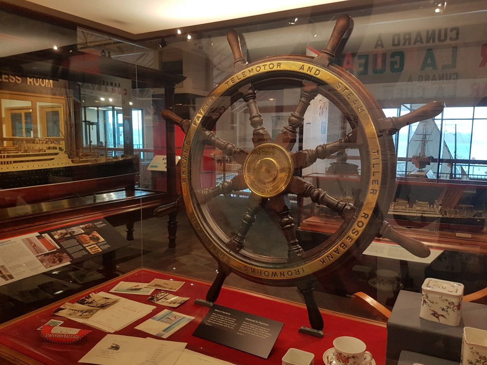 I did also manage to take a quick look at the Cunard exhibition before leaving, but it was much smaller than I’d expected it to be. Of course, Samuel Cunard was born in Halifax, so only fitting that he would have an exhibition of some sort. I liked the wheel from Aquitania, which had been presented to the city of Halifax by Cunard Line in 1950 because of the ship’s long association with the port.