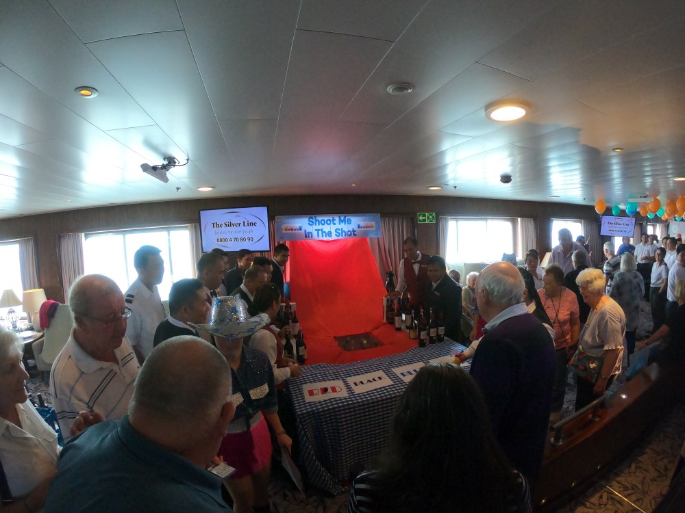 In total, passengers & crew on this cruise raised a massive £15,957.90 for The Silver Line! This was by way of the auction, donations and during the last few days of the sailing, a country fayre that was held in the Britannia lounge. I could hear screaming, shouting, laughing and cheering from 2 decks above, so I had to go along and see what was going on. Everyone was having a ball and the crew were getting right into the thick of it. It was great fun and such a fab idea to raise more money for The Silver Line. I’d never seen so many people walking around with bottles of wine, there were clearly a lot of happy winners.