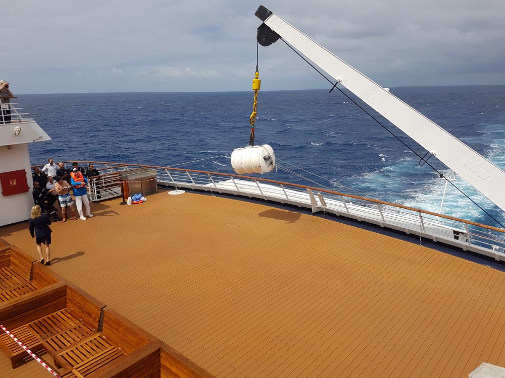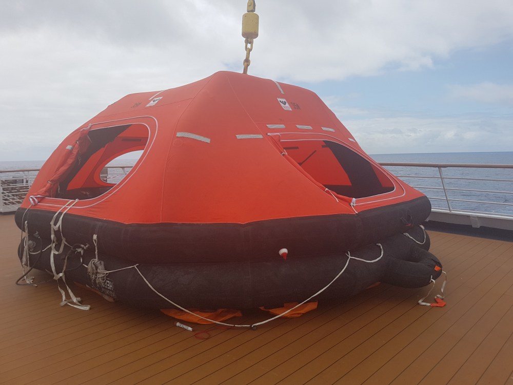 As I mentioned earlier, there had been an auction onboard several days earlier to raise money for The Silver Line. One of the prizes was to inflate a liferaft on the deck. The excitement wasn’t limited, however, to just those that would be doing the inflating, the ship made a show of it and everyone lined the aft decks to watch. It was great fun, but incredibly noisy! I had thought at first that it wasn’t going to inflate, but once a few crew members helped out, the plastic soon popped, and the raft began to inflate. It was left on the deck for a few hours so everyone could have a look and take some photos. I’m glad no other ships were close enough to see what was going on, they must have thought we were crazy! I love things like that. Something different that you definitely don’t get on many, if any other cruise ships. I’ll post the video to my Facebook page in the coming days, so make sure you’re following.