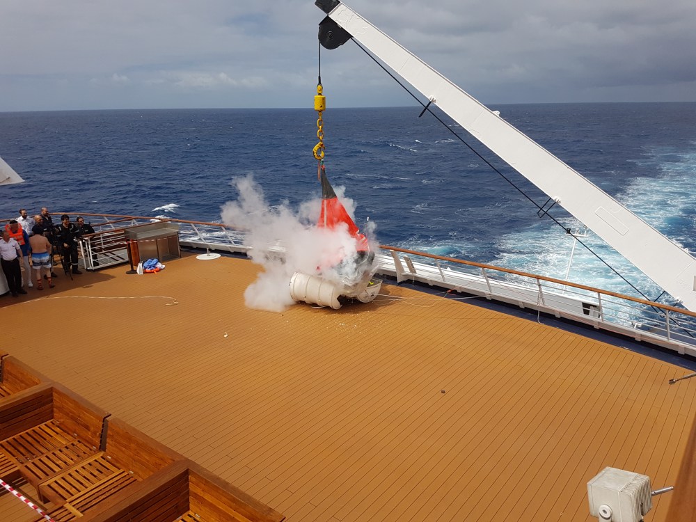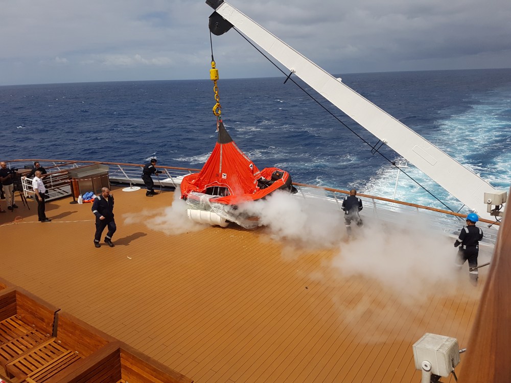 During one of the sea days, there was an onboard auction to raise money for The Silver Line. Up for grabs were some very interesting opportunities, including steering the ship, starting the engines and inflating a liferaft on the deck. Captain Horne and Dame Esther Rantzen were in charge of the auction and proved to be quite the comedy duo. It was a fun 90 minutes, although I’m sure it would have gone on for much longer had the Cruise Director not told them both to get a move on. We all got the chance to participate in the liferaft inflating, but I’ll get to that later.