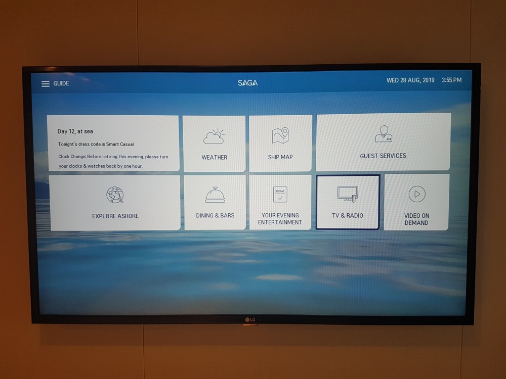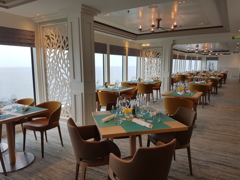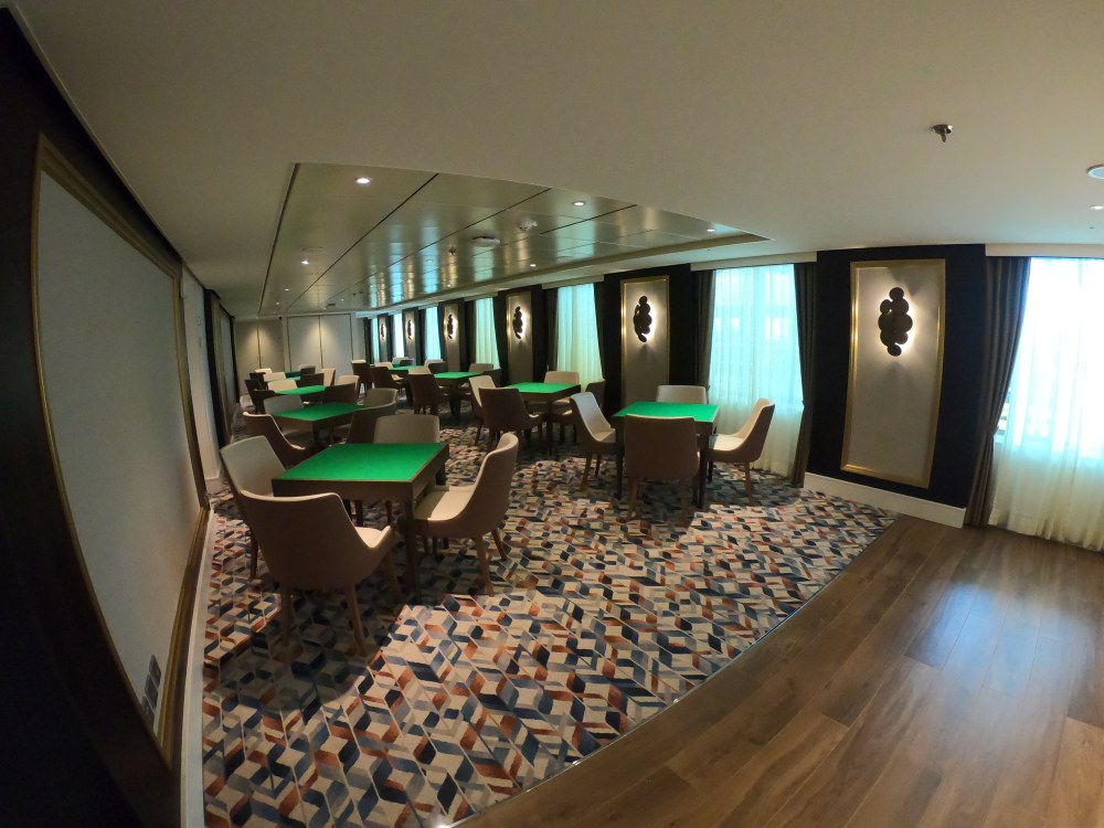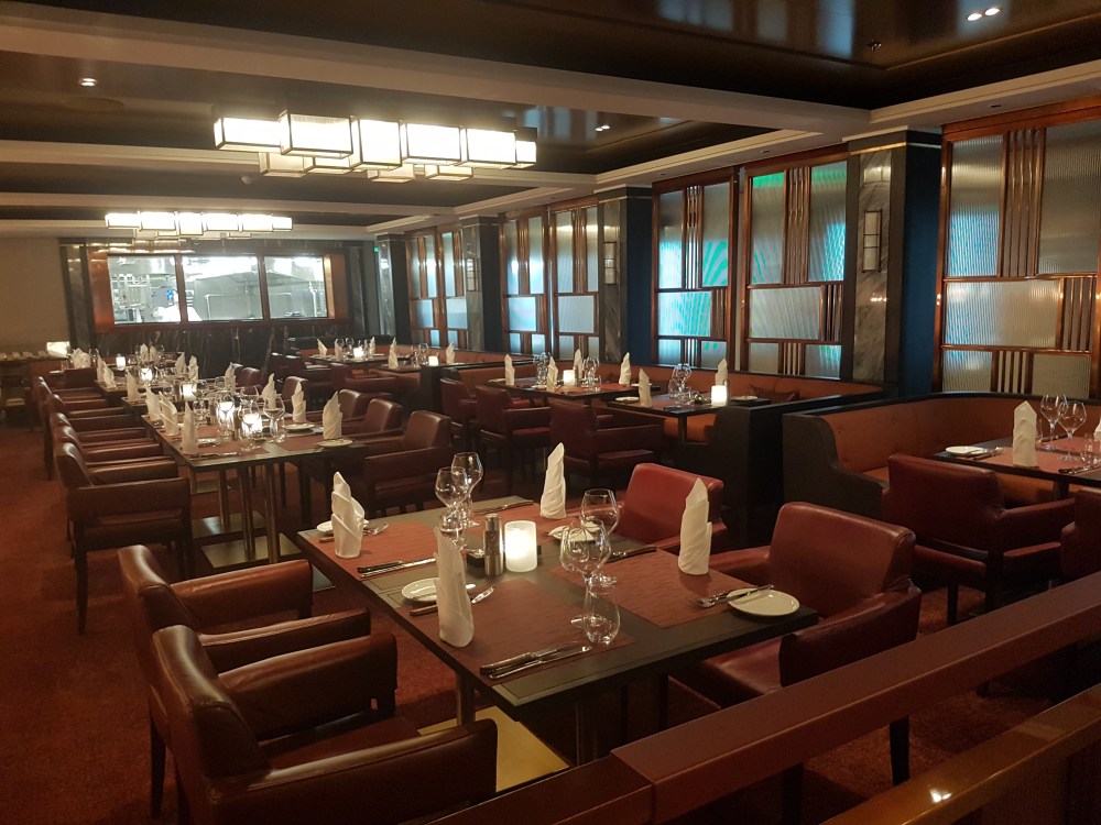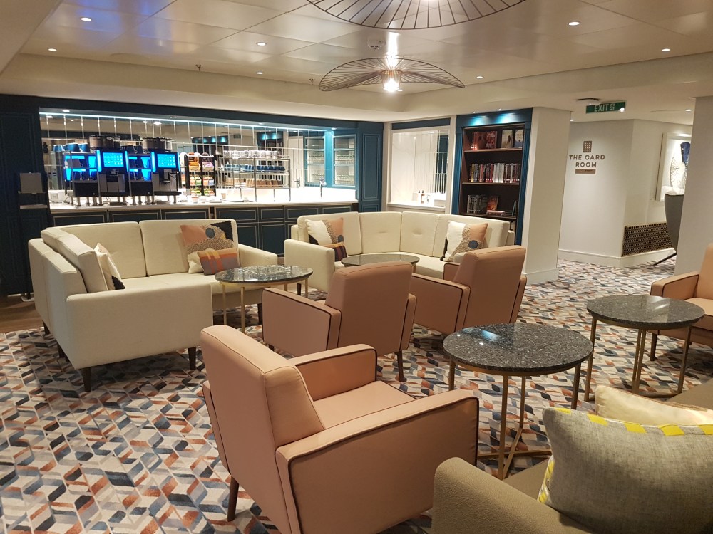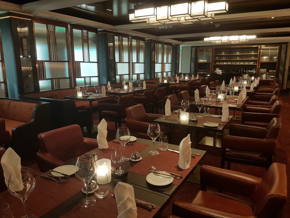 The atrium from above, showing decks 5, 6 and 7, where you’ll find the Library, Craft Room, South Cape Bar and living RoomThe gorgeous atrium as seen from Deck 5 – directly in front of the Living Room.One side of the Living Room. The Living Room bar is open from morning until 11pm. You can also get fresh finger sandwiches, pastries and ice cream here, and tea and coffee.A section of the library on Deck 6.The self-service coffee and tea area in the library. There’s no juice machine here, but there are 2 in The Grill.Another angle of the library, it extends across a large area but is broken into sections so it feels cosy.The Craft Room Deck 6The Card Room on Deck 6South Cape Bar on Deck 6. Est. 2019.There are several sofas and tables just outside the South Cape Bar, if you’d prefer something more comfortable. I love the vases!The promenade Deck, Deck 6.The Promenade Deck aftGet your laps in!One angle of the Britannia Lounge on Deck 12. One of my absolute favourite spaces onboard. This is the place for evening dancing and live music.The Britannia Lounge barI love the lighting above the bar in the Britannia Lounge.Furnishings in the Britannia LoungeIn front of the Britannia Lounge – there’s a door behind the band area.The Lido Deck. It’s a great place to enjoy day and night, and another of my favourite areas. I love the colours!A wide-angle shot from the other direction showing the pool and loungers, and 2 hot tubs at the back.A view point on Deck 13 aft.You can do laps on Deck 13 and Deck 6Shuffleboard on Deck 13.Shuffleboard in the middle and then cosy chairs and sofas for lounging.The Fairway on Deck 13 port side. You can play golf or a shooting game.Ping Pong tables on Deck 12.Don’t worry, the ice cream machine is still there! it’s on the Lido, next to the bar.The boiled sweets are still there, too. They are on the Lido (just outside The Grill) on the starboard side.Entrance to The Grill on Deck 12 aft. The Grill is inside and then there is outside seating on the verandah. Open for breakfast, lunch and dinner. The Grill is now a buffet dinner option on smart casual evenings. On formal nights, one side is waiter service and the other is buffet.One of the seating areas in The Grill. On formal evenings you have the choice of buffet or waiter service. On smart casual evenings it is a buffet. This photo shows it set for dinner.Another view of The Grill. This photo showing it set for lunch.Ready for Sunday roast carving in The Grill.Cheese selection as set up buffet-style.Salad selection in The Grill.Salad bar and outer grill on The verandah. You can enjoy self-service salad or table service for fish and chips, burgers, hot dogs and more.The grill on The verandah.Saga’s famous fish and chips at The Verandah grill.The Verandah as seen from Deck 13.The Grand Dining Room on Deck 5. Open for breakfast, lunch and dinner.Another section within The Grand Dining Room.Looking down into The Grand Dining Room from The Club above on Deck 6.The Club by Jools Holland Deck 6. Open for dinner until 9pm and then it becomes an evening entertainment venue with live music.I love The Club. It’s my joint favourite restaurant (with East to West) and the ambience is perfect.On the port side, you can observe the galley team preparing the food for The Club.Some of the galley team at The Club.A filet mignon with thrice cooked chips and creamed spinach – my favourite!East to West Deck 6 aft port side. Open for dinner only.The new look East to West is gorgeous. The colours are fresh and vibrant.King prawn massaman curry with jasmine rice, wilted pak choi and Chinese cabbage – absolutely delicious and not spicy at all.Coast to Coast restaurant is on Deck 6 aft starboard side. Most dishes are seafood, but they do have a few other options. It’s ALWAYS fully booked, so make sure you get in there early. Open for dinner only.Two seater tables as you enter Coast to Coast.Larger tables in Coast to CoastLobster thermidor at Coast to Coast.The Secret Garden Deck 6 aft outside East to West and Coast to Coast.Her gorgeous tiered stern. Each deck has an aft access door on either side and a set of stairs either side. You’ll also find some sort of seating area on each.And from above in the sunshine.The gym is located on Deck 13 forward – above the Britannia Lounge. it can be accessed via the Deck 13 port side forward staircase (where the S500 cabins are) or via Deck 12 on the starboard side. Just before you enter the Britannia Lounge (starboard side), you’ll see a staircase on your left, that leads you to the gym.The hydrotherapy pool within the spa on Deck 5. The spa is open 8am to 8pm.Hot stone beds opposite the hydrotherapy pool.The infra-red saunaOne of the treatment roomsThe Playhouse Theatre during a performance from Jools Holland and Ruby Turner. This space is used for theatre-style shows, lectures and live music.The launderette on Deck 8. There’s also one on Deck 10. Washing powder is still provided.The Medical Centre on Deck 4. That’s as much as we all need to know about that! 😉The Shop on Deck 5. There’s also a jewellery shop on the other side of the Living Room.One of the stairwells showcasing the incredible art onboard. It really is fabulous!The new interactive TV system in each cabin is very good. They’re still working on additional features, but there’s a great movie collection.