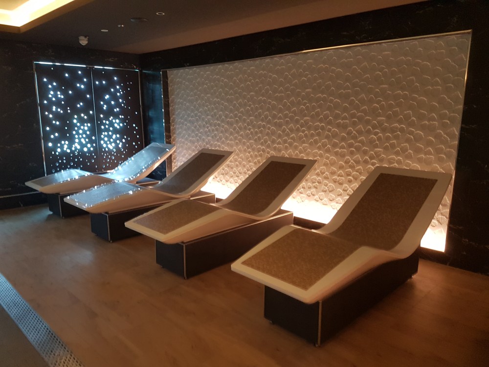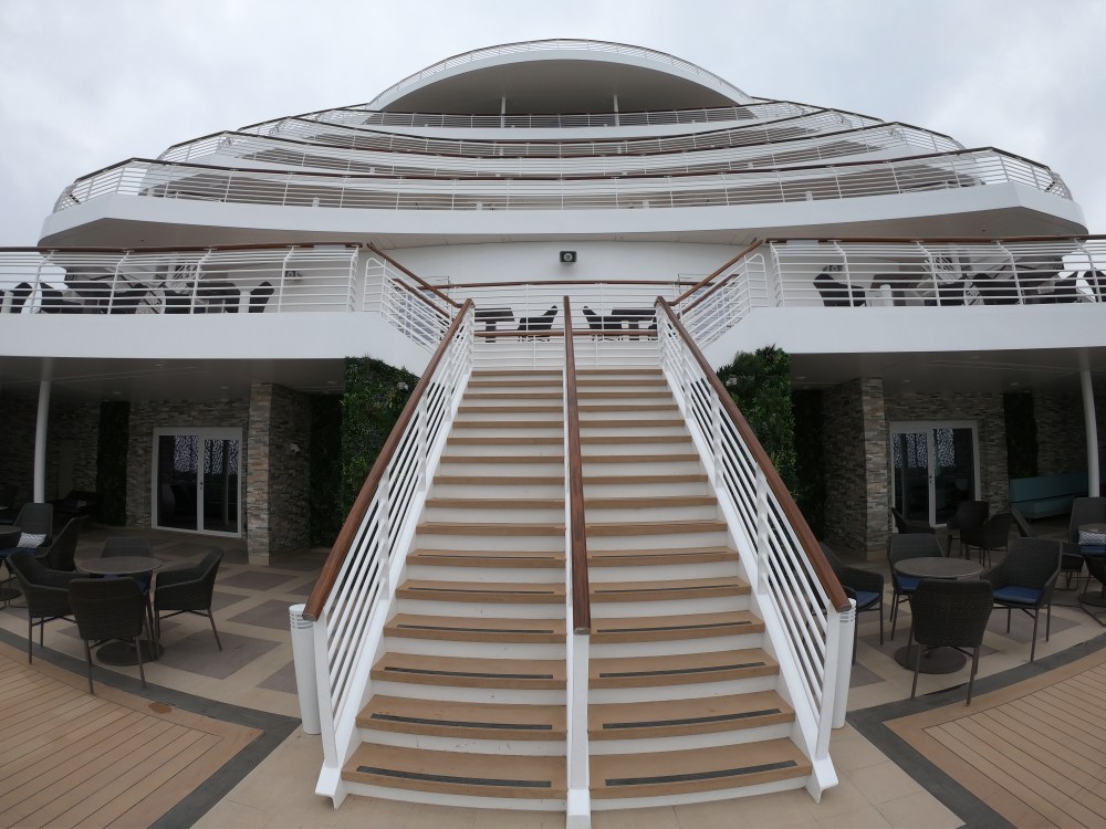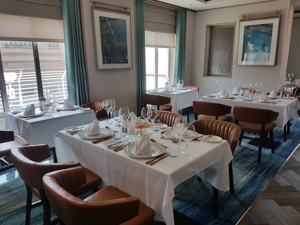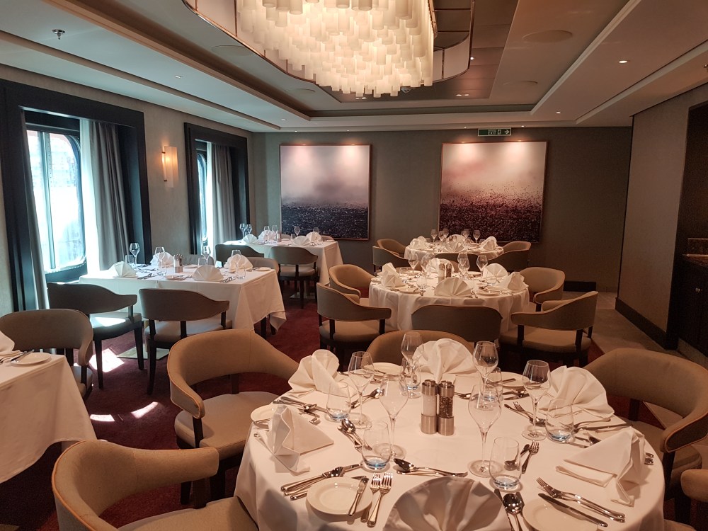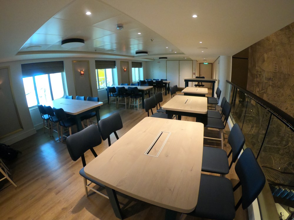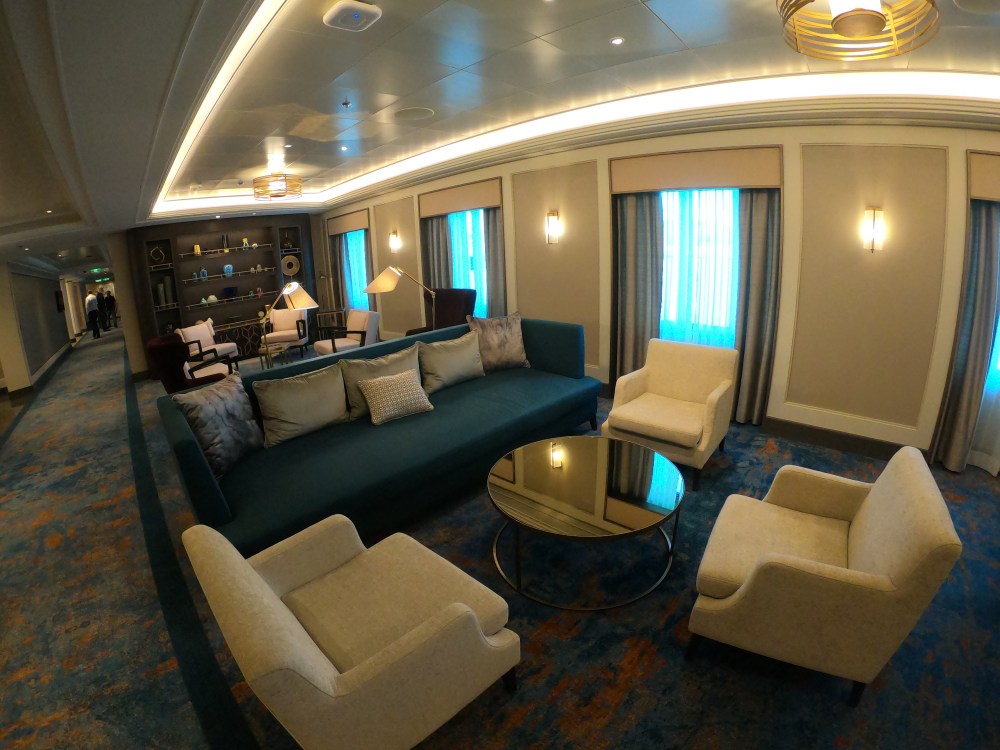 The atrium from above, showing decks 5, 6 and 7, where you’ll find the Library, Craft Room, South Cape Bar and living RoomThe gorgeous atrium as seen from Deck 5 – directly in front of the Living Room.One side of the Living Room. The Living Room bar is open from morning until 11pm. You can also get fresh finger sandwiches, pastries and ice cream here, and tea and coffee.A section of the library on Deck 6.The self-service coffee and tea area in the library. There’s no juice machine here, but there are 2 in The Grill.Another angle of the library, it extends across a large area but is broken into sections so it feels cosy.The Craft Room Deck 6The Card Room on Deck 6South Cape Bar on Deck 6. Est. 2019.There are several sofas and tables just outside the South Cape Bar, if you’d prefer something more comfortable. I love the vases!The promenade Deck, Deck 6.The Promenade Deck aftGet your laps in!One angle of the Britannia Lounge on Deck 12. One of my absolute favourite spaces onboard. This is the place for evening dancing and live music.The Britannia Lounge barI love the lighting above the bar in the Britannia Lounge.Furnishings in the Britannia LoungeIn front of the Britannia Lounge – there’s a door behind the band area.The Lido Deck. It’s a great place to enjoy day and night, and another of my favourite areas. I love the colours!A wide-angle shot from the other direction showing the pool and loungers, and 2 hot tubs at the back.A view point on Deck 13 aft.You can do laps on Deck 13 and Deck 6Shuffleboard on Deck 13.Shuffleboard in the middle and then cosy chairs and sofas for lounging.The Fairway on Deck 13 port side. You can play golf or a shooting game.Ping Pong tables on Deck 12.Don’t worry, the ice cream machine is still there! it’s on the Lido, next to the bar.The boiled sweets are still there, too. They are on the Lido (just outside The Grill) on the starboard side.Entrance to The Grill on Deck 12 aft. The Grill is inside and then there is outside seating on the verandah. Open for breakfast, lunch and dinner. The Grill is now a buffet dinner option on smart casual evenings. On formal nights, one side is waiter service and the other is buffet.One of the seating areas in The Grill. On formal evenings you have the choice of buffet or waiter service. On smart casual evenings it is a buffet. This photo shows it set for dinner.Another view of The Grill. This photo showing it set for lunch.Ready for Sunday roast carving in The Grill.Cheese selection as set up buffet-style.Salad selection in The Grill.Salad bar and outer grill on The verandah. You can enjoy self-service salad or table service for fish and chips, burgers, hot dogs and more.The grill on The verandah.Saga’s famous fish and chips at The Verandah grill.The Verandah as seen from Deck 13.The Grand Dining Room on Deck 5. Open for breakfast, lunch and dinner.Another section within The Grand Dining Room.Looking down into The Grand Dining Room from The Club above on Deck 6.The Club by Jools Holland Deck 6. Open for dinner until 9pm and then it becomes an evening entertainment venue with live music.I love The Club. It’s my joint favourite restaurant (with East to West) and the ambience is perfect.On the port side, you can observe the galley team preparing the food for The Club.Some of the galley team at The Club.A filet mignon with thrice cooked chips and creamed spinach – my favourite!East to West Deck 6 aft port side. Open for dinner only.The new look East to West is gorgeous. The colours are fresh and vibrant.King prawn massaman curry with jasmine rice, wilted pak choi and Chinese cabbage – absolutely delicious and not spicy at all.Coast to Coast restaurant is on Deck 6 aft starboard side. Most dishes are seafood, but they do have a few other options. It’s ALWAYS fully booked, so make sure you get in there early. Open for dinner only.Two seater tables as you enter Coast to Coast.Larger tables in Coast to CoastLobster thermidor at Coast to Coast.The Secret Garden Deck 6 aft outside East to West and Coast to Coast.Her gorgeous tiered stern. Each deck has an aft access door on either side and a set of stairs either side. You’ll also find some sort of seating area on each.And from above in the sunshine.The gym is located on Deck 13 forward – above the Britannia Lounge. it can be accessed via the Deck 13 port side forward staircase (where the S500 cabins are) or via Deck 12 on the starboard side. Just before you enter the Britannia Lounge (starboard side), you’ll see a staircase on your left, that leads you to the gym.The hydrotherapy pool within the spa on Deck 5. The spa is open 8am to 8pm.Hot stone beds opposite the hydrotherapy pool.The infra-red saunaOne of the treatment roomsThe Playhouse Theatre during a performance from Jools Holland and Ruby Turner. This space is used for theatre-style shows, lectures and live music.The launderette on Deck 8. There’s also one on Deck 10. Washing powder is still provided.The Medical Centre on Deck 4. That’s as much as we all need to know about that! 😉The Shop on Deck 5. There’s also a jewellery shop on the other side of the Living Room.One of the stairwells showcasing the incredible art onboard. It really is fabulous!The new interactive TV system in each cabin is very good. They’re still working on additional features, but there’s a great movie collection.