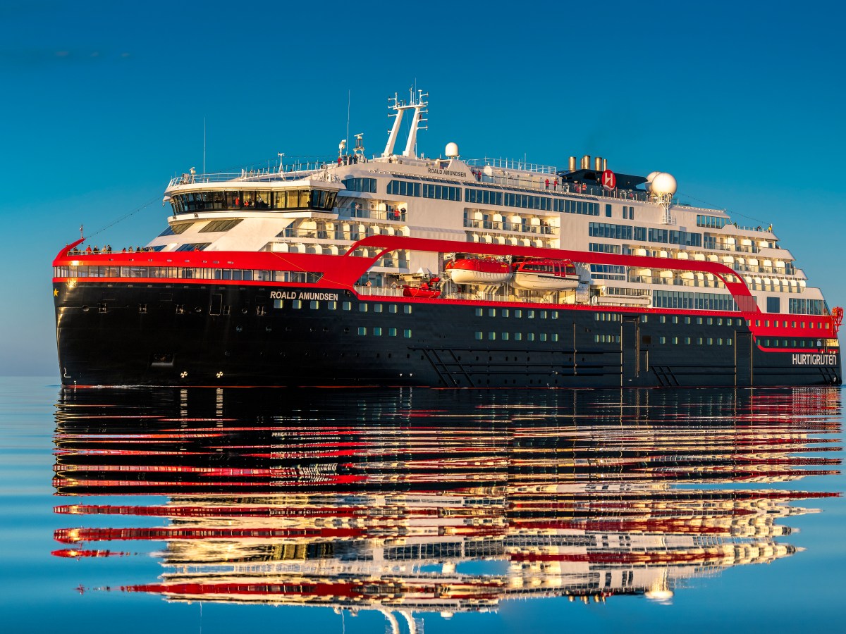 Specially designed for exploring some of the most spectacular polar waters of the planet, MS Roald Amundsen features groundbreaking green technology. The hybrid-powered expedition cruise ship uses battery packs to support her low-emission engines and will reduce CO2 emissions with more than 20% compared to other cruise ships of the same size.