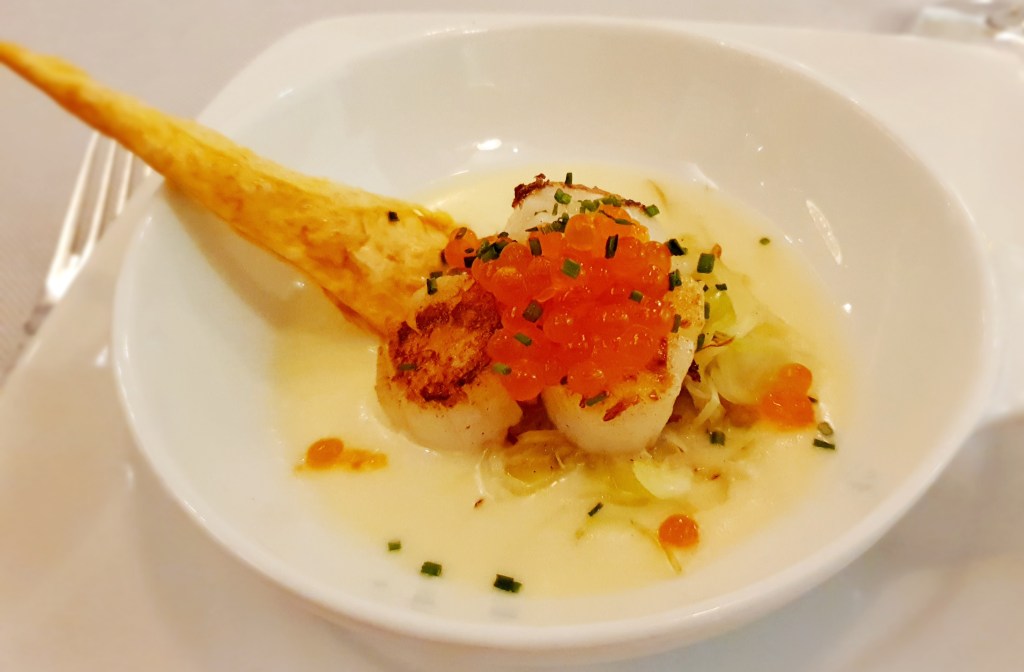 Seared Scallops, Salmon Caviar, Herb Beurre Blanc – Crown Grill (additional charge)