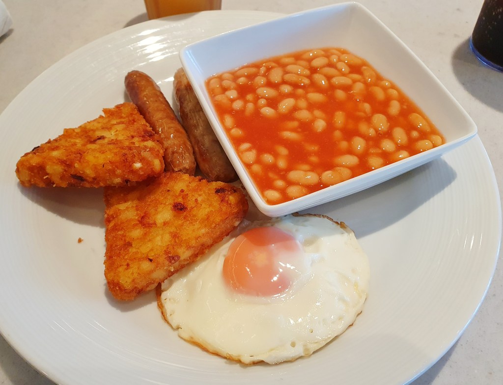 Skinny sausages, hash browns, beans and an egg – Buffey
