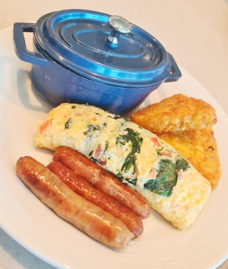 Freshly made omelette with spinach, cheese and tomato – Buffet