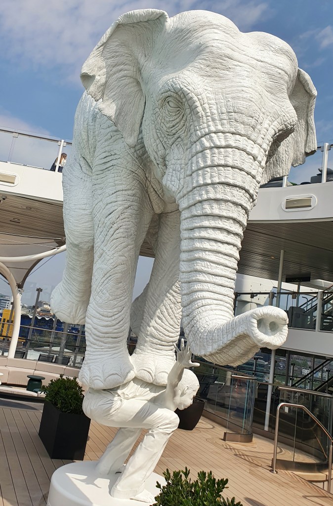 There was a lot of distinct artwork onboard and some of it was so beautiful! You must look out for some of these pieces during your time onboard. My top 3 were the lady with the duck rubber ring, the elephant and the silver peacock.