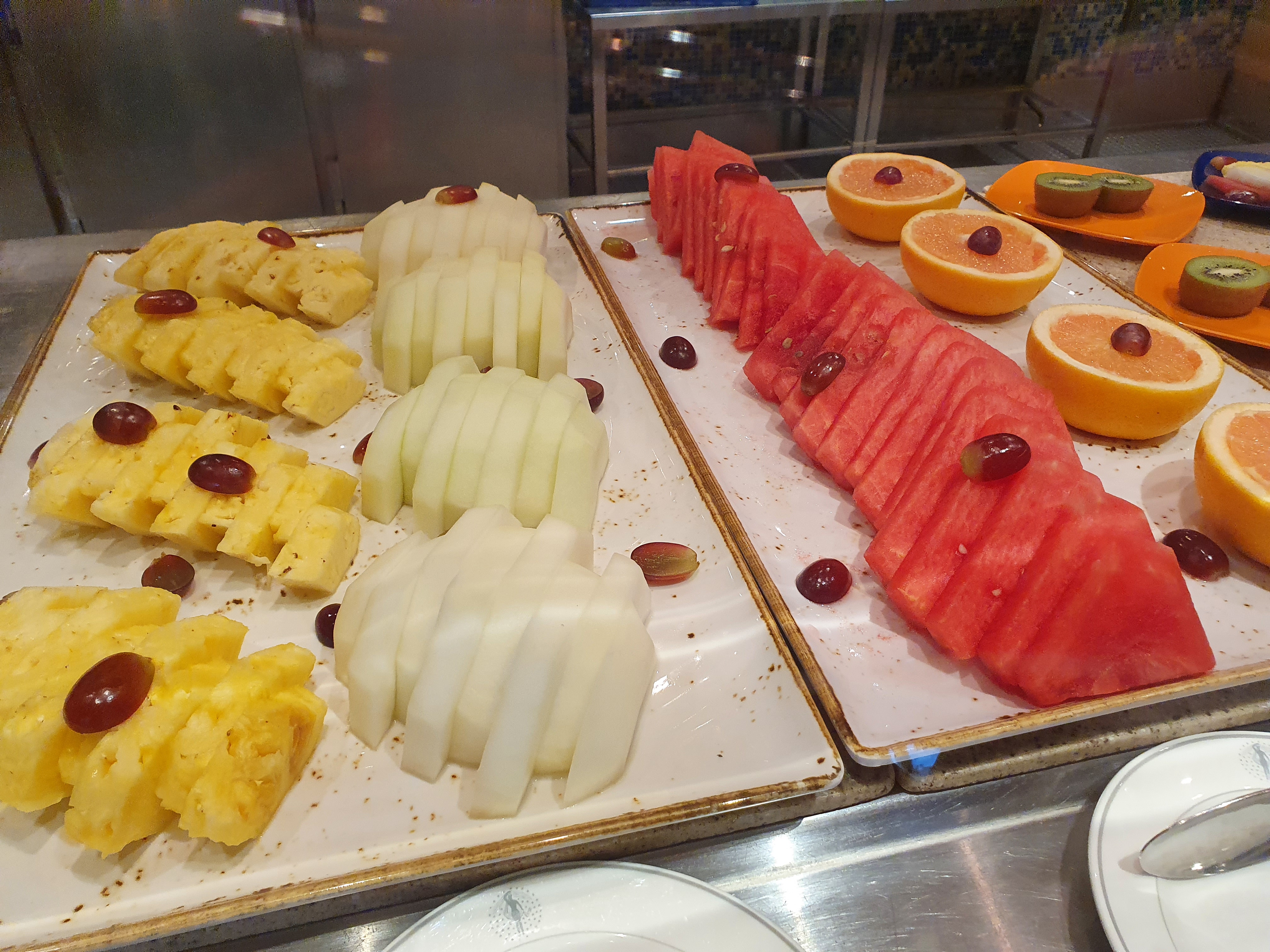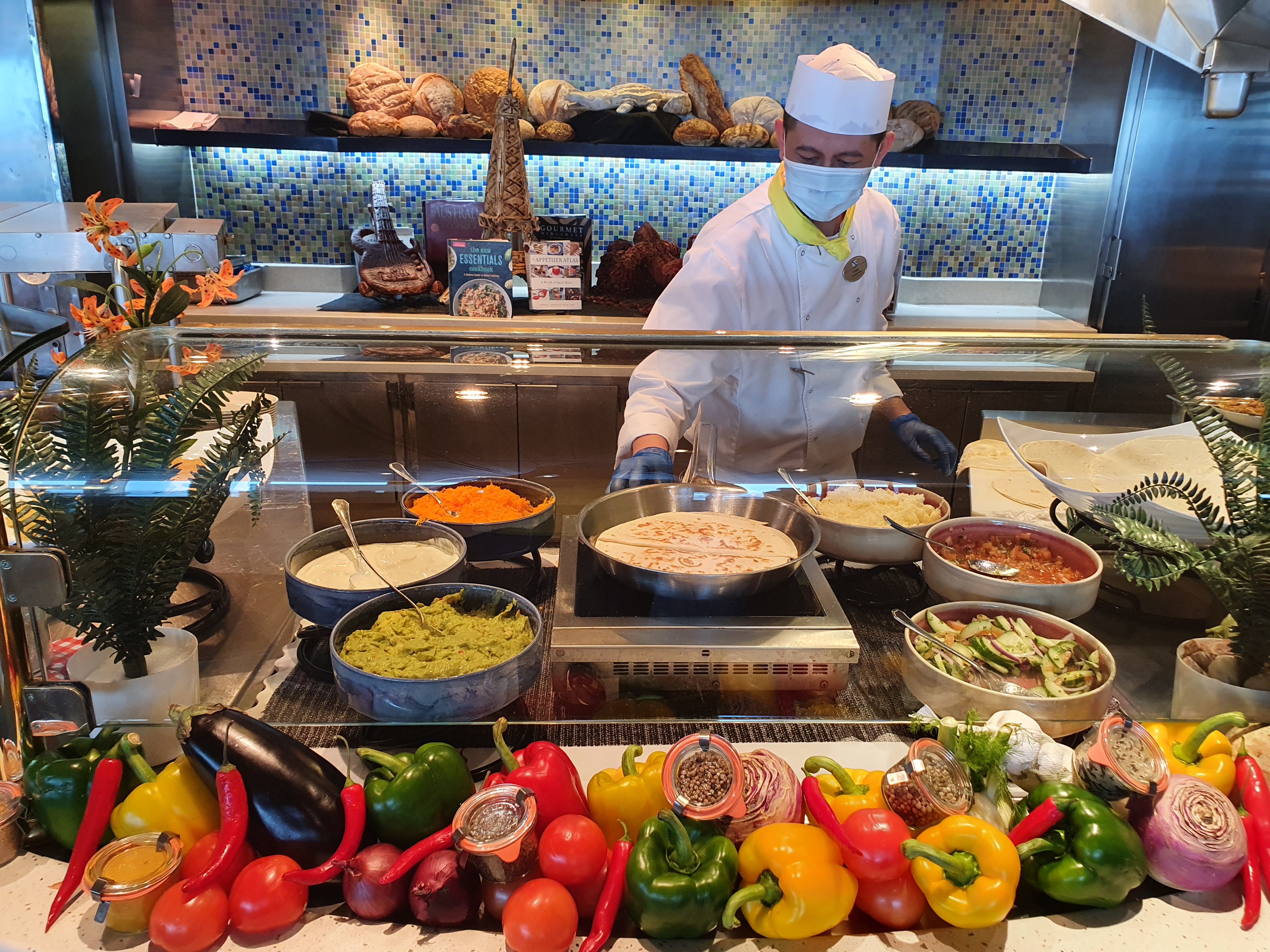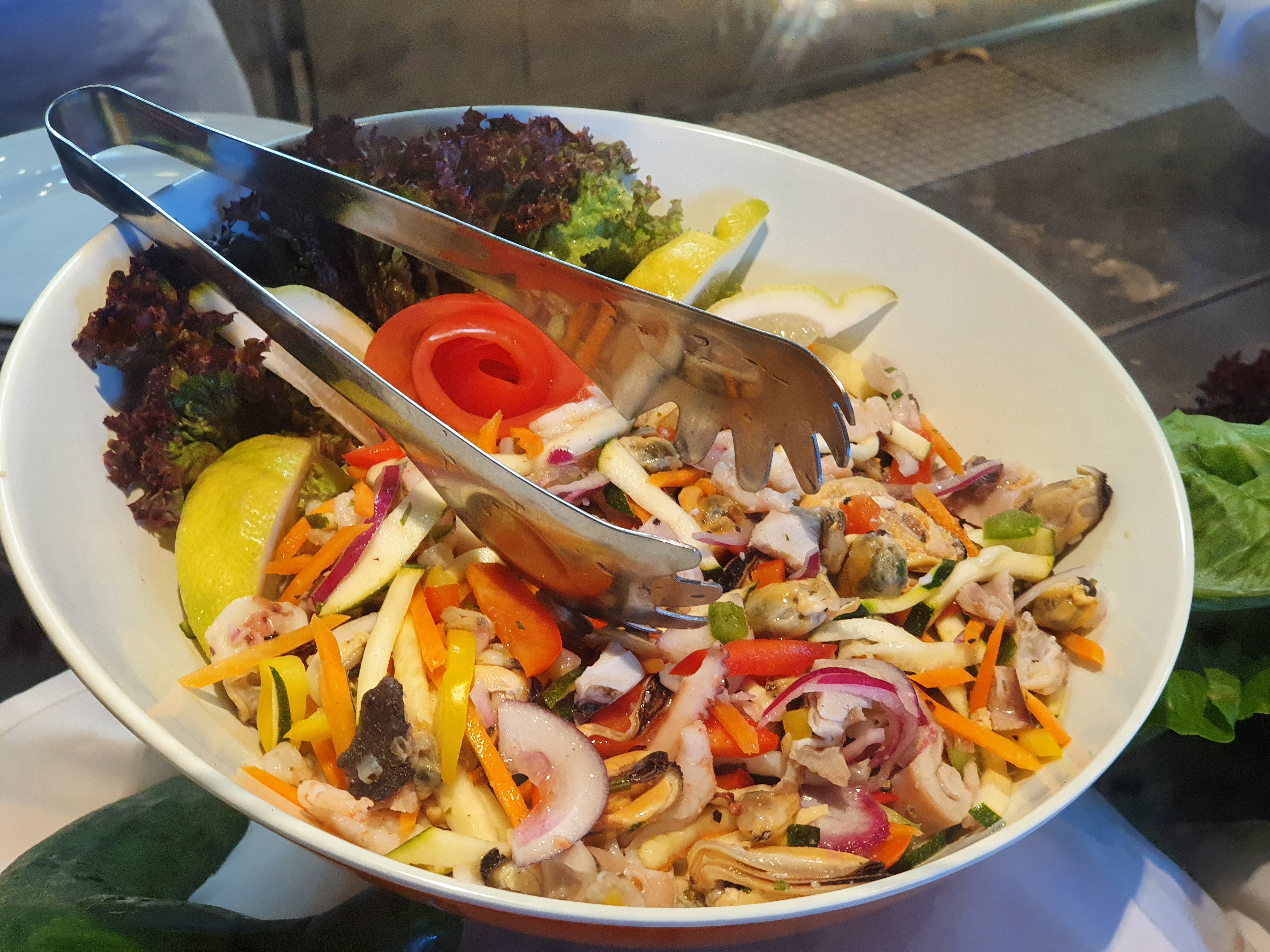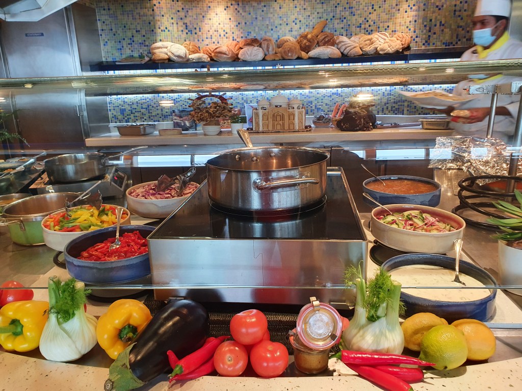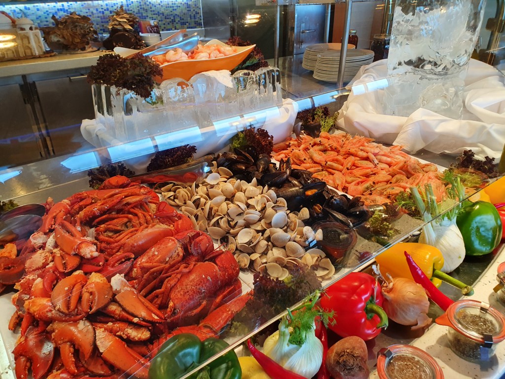 I think I mentioned the buffet briefly in a previous post, so I’ll come back to that now and share a few pictures of what was available. I felt like it was never closed, it was a continuous operation from morning until night, and the selection was fabulous! I don’t really know where to start on telling you what there was, but to give you an idea, there was one station that was available every night and it included burgers, hot dogs and usually tacos. You could have stir-fry, curry, fresh meats and cheese’s, soup, lasagne – you name it and at one point or another, they had it. The seafood buffet also made an appearance and that was nice, but not as nice as the garlic prawns I had one day – they were heaven! In fact, I spotted them on my way to the Poolside and thought a few prawns won’t spoil my fish and chips, I just couldn’t walk past them and I’m glad I didn’t. I also really enjoyed the chicken quesadillas, and I had a chicken stir-fry at one point that was also delicious. The stir-fry is cooked to order and in front of you, so you can pick and choose what you want in it.