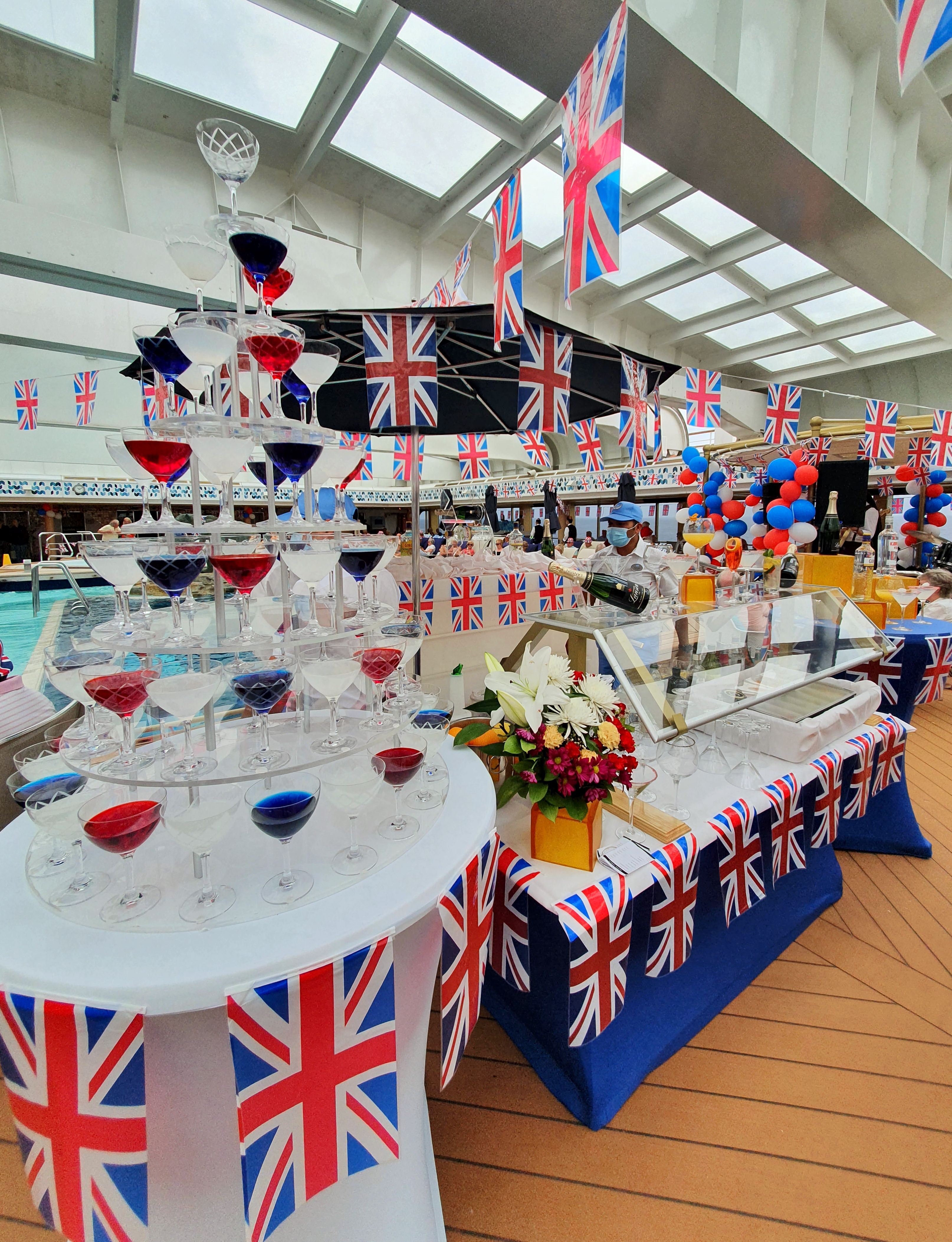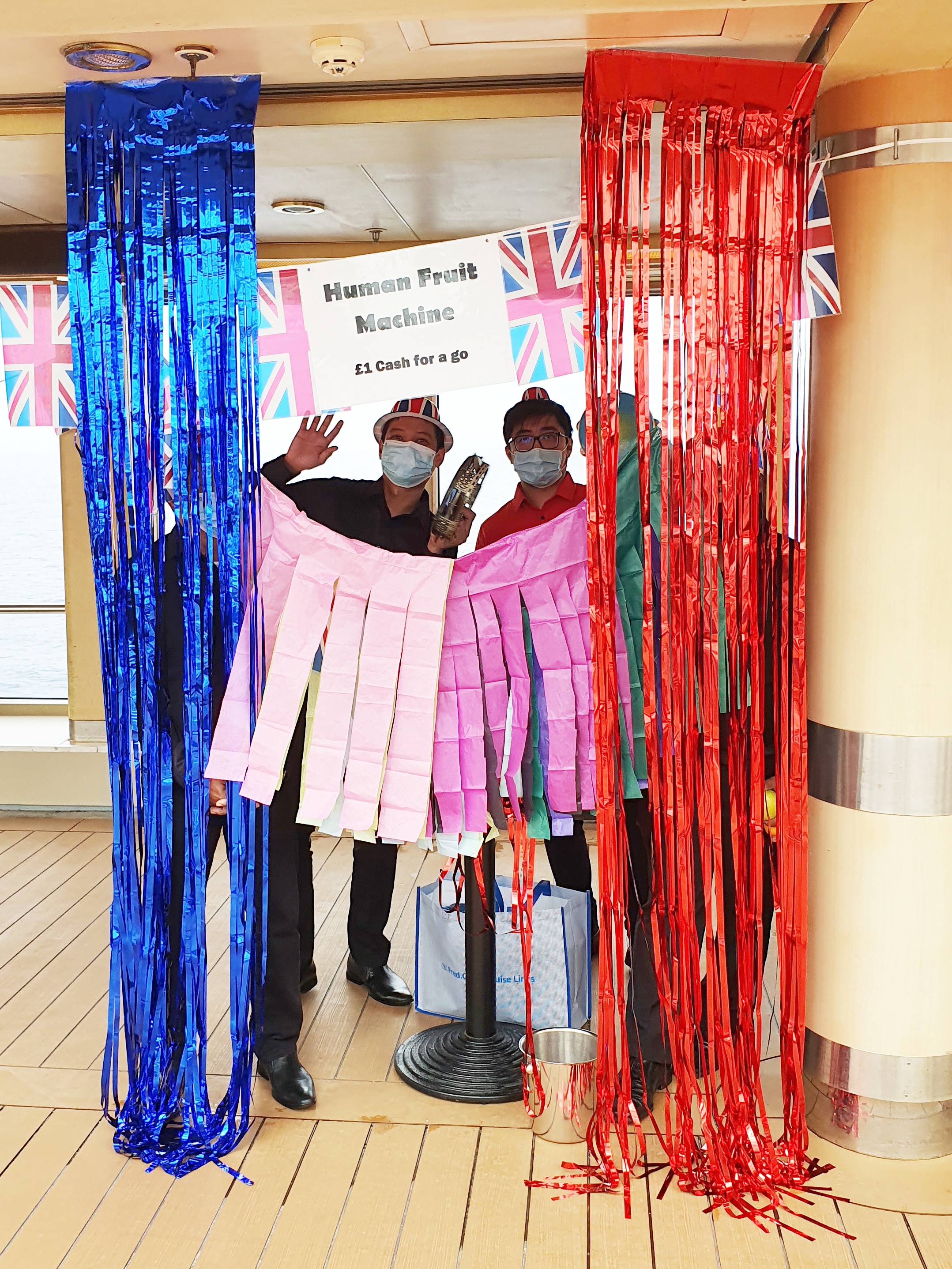 As the Queen’s Jubilee celebrations began before we disembarked, we had a little country fayre-type event on the Lido Deck. There were various stalls, including the human fruit machine, face painting, name the teddy and so on. All the money raised was to be donated to the RNLI and I think Bolette raised something in the region of £2000.