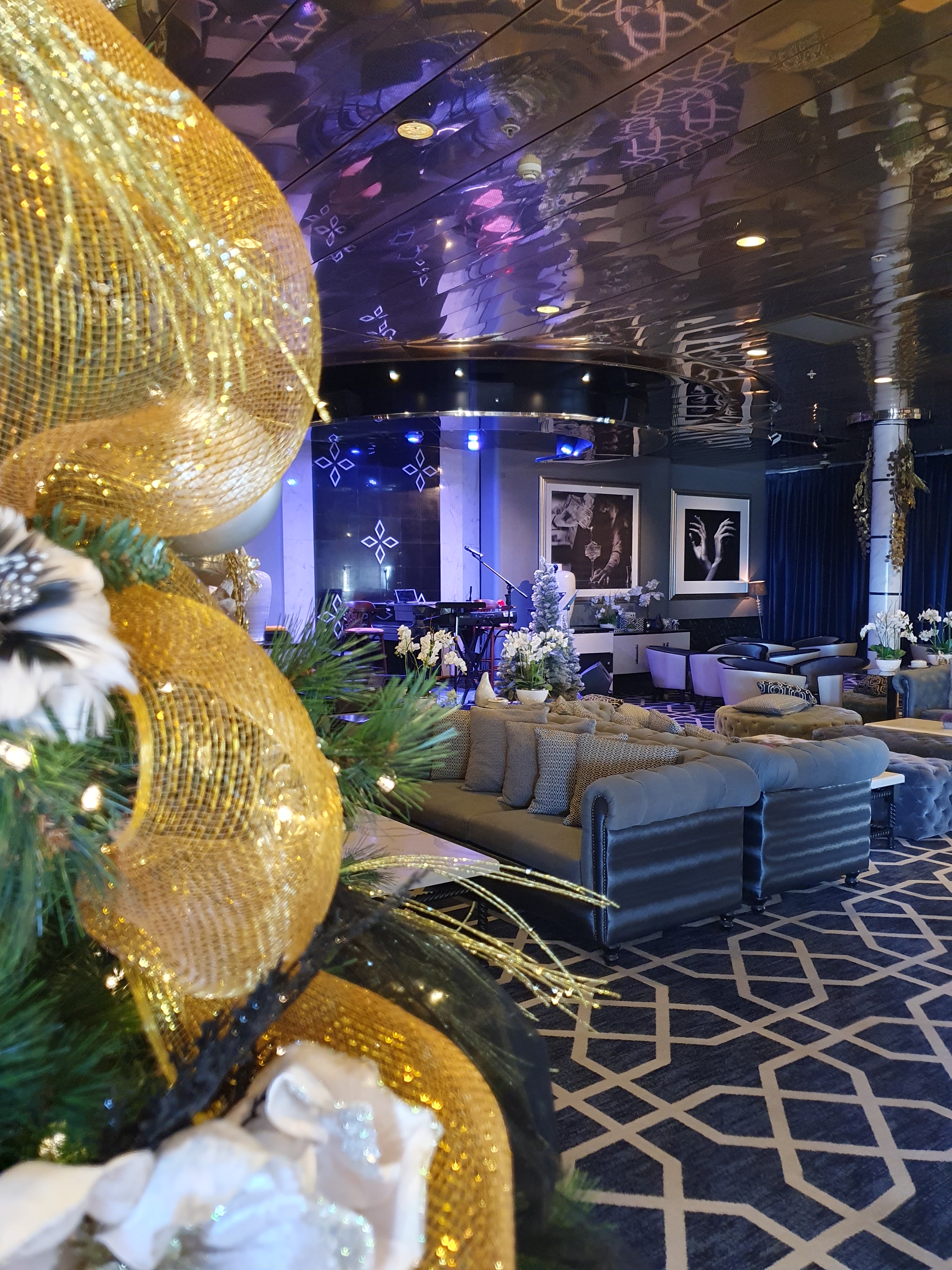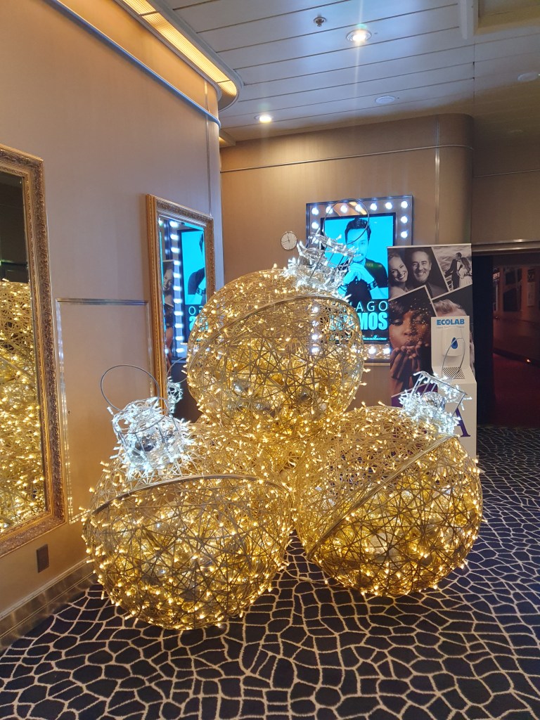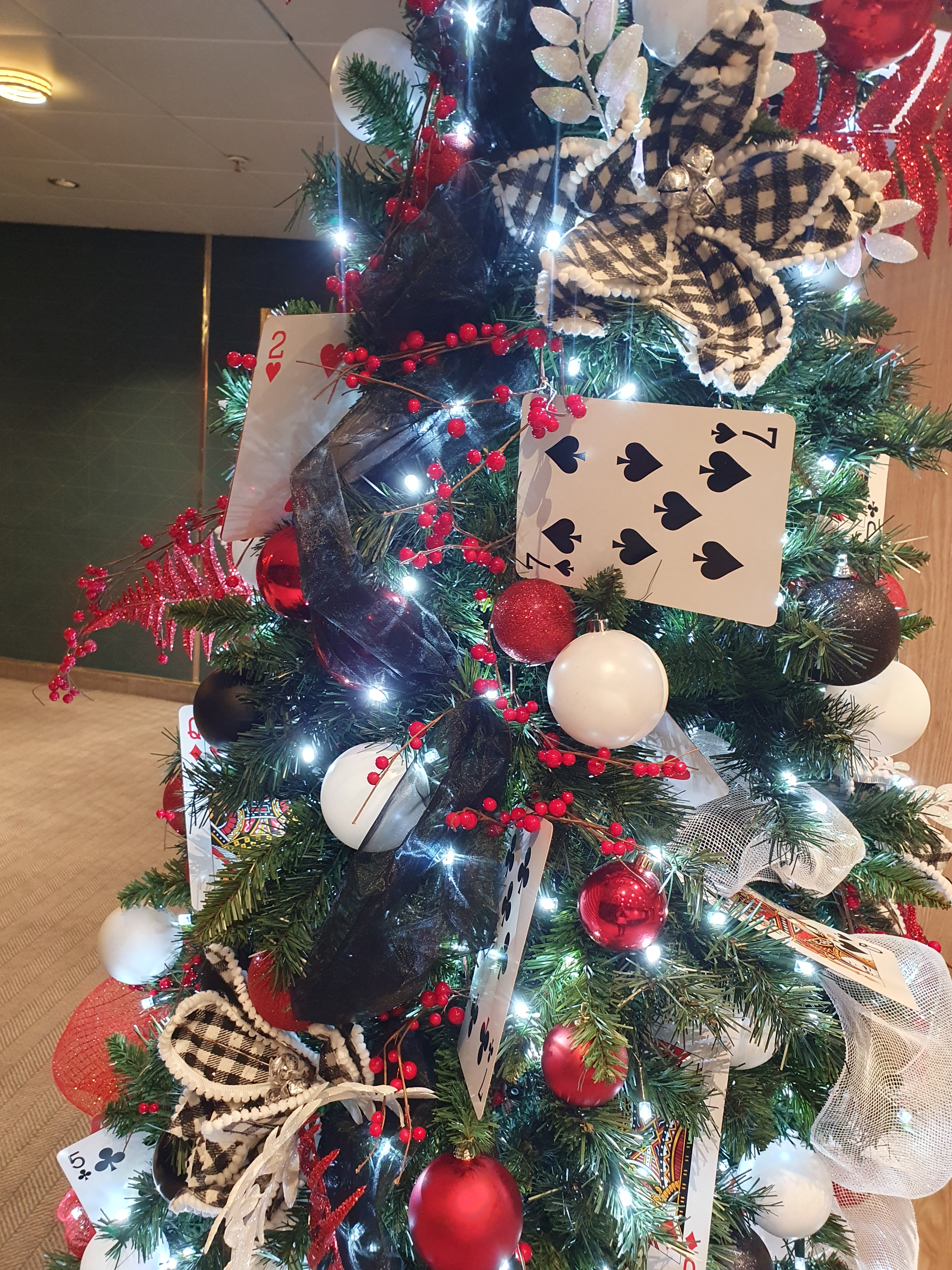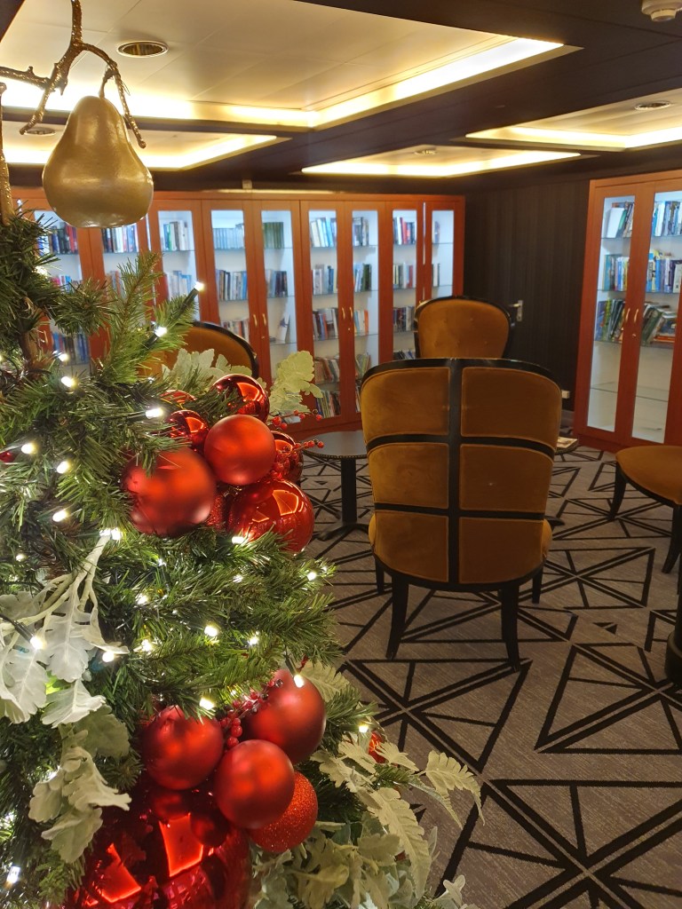 Ambassador went above and beyond on the ships’ Christmas decorations. I can honestly say that I’ve never seen so many beautiful trees and decorations on a cruise ship – they were everywhere, much to my delight! A team came onboard in Tilbury and spent several days decorating every part of Ambience. There was even a card themed tree in the card room and I loved it! I stumbled across it at around 4am one morning when I couldn’t sleep.