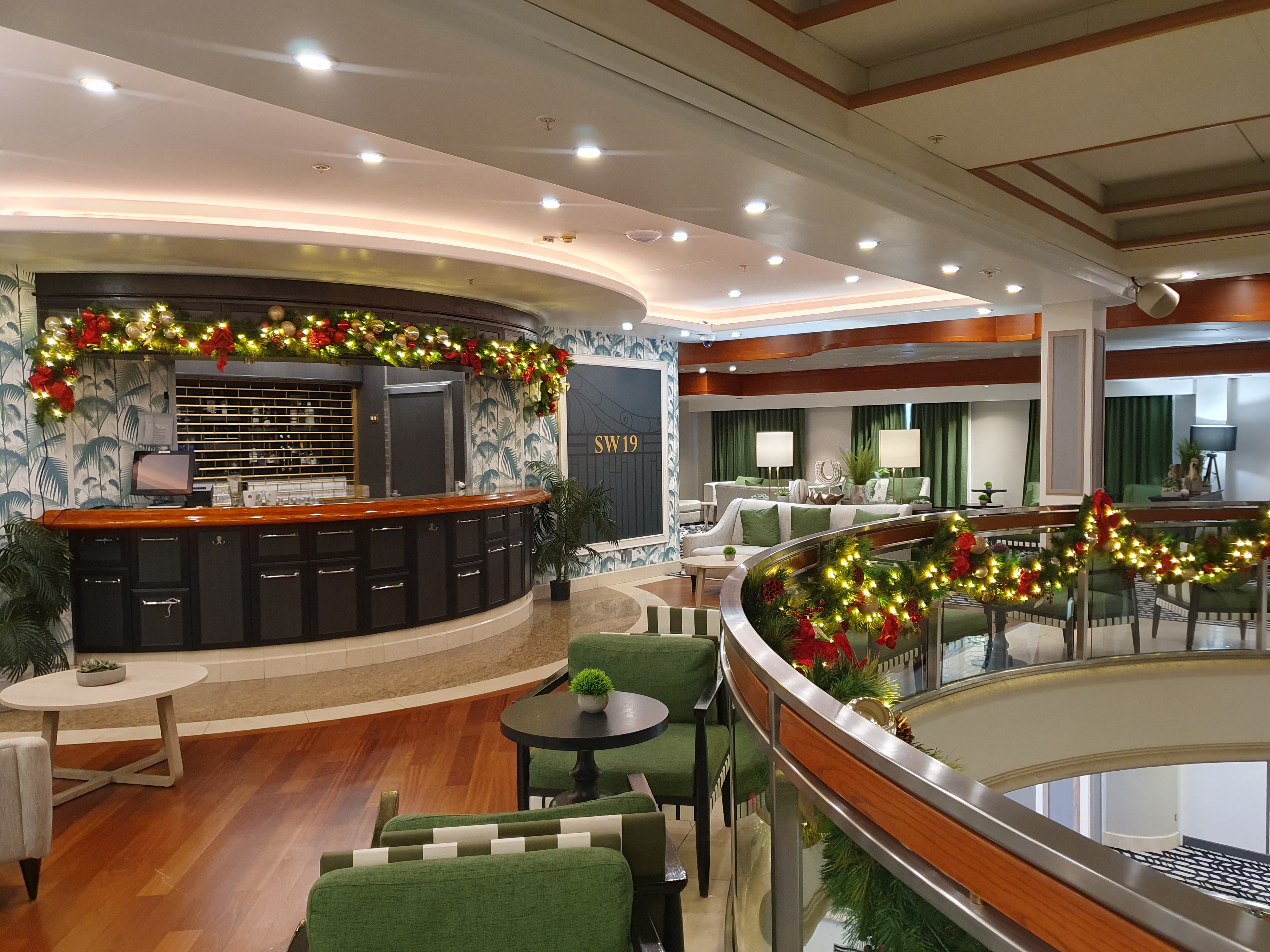 Her interior spaces are just beautiful! Across the entire ship, the only thing I didn’t like was the main stairwell carpet, so I think I can give a 9.5 out of 10 on that side of things. My favourite areas were her main Lido Deck, The Botanical Lounge, Raffles Bar, The observatory (I loved the ram-headed tables in there) and Borough Market. I also liked the Purple Turtle Pub and was frequently dragged in there by my friend to watch the football. I’ll be honest, she’s an older ship so I had expected some of her spaces to look tired and run-down, but that really was not the case and I think that’s what surprised me. Everything looked relatively new and cared for and some of her lounges felt more glamorous than I’d expected.