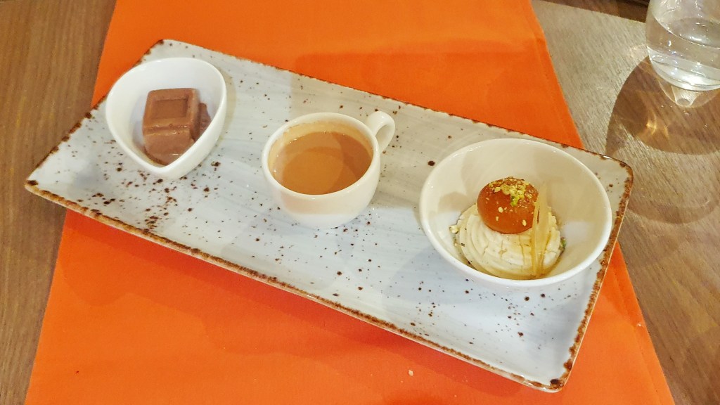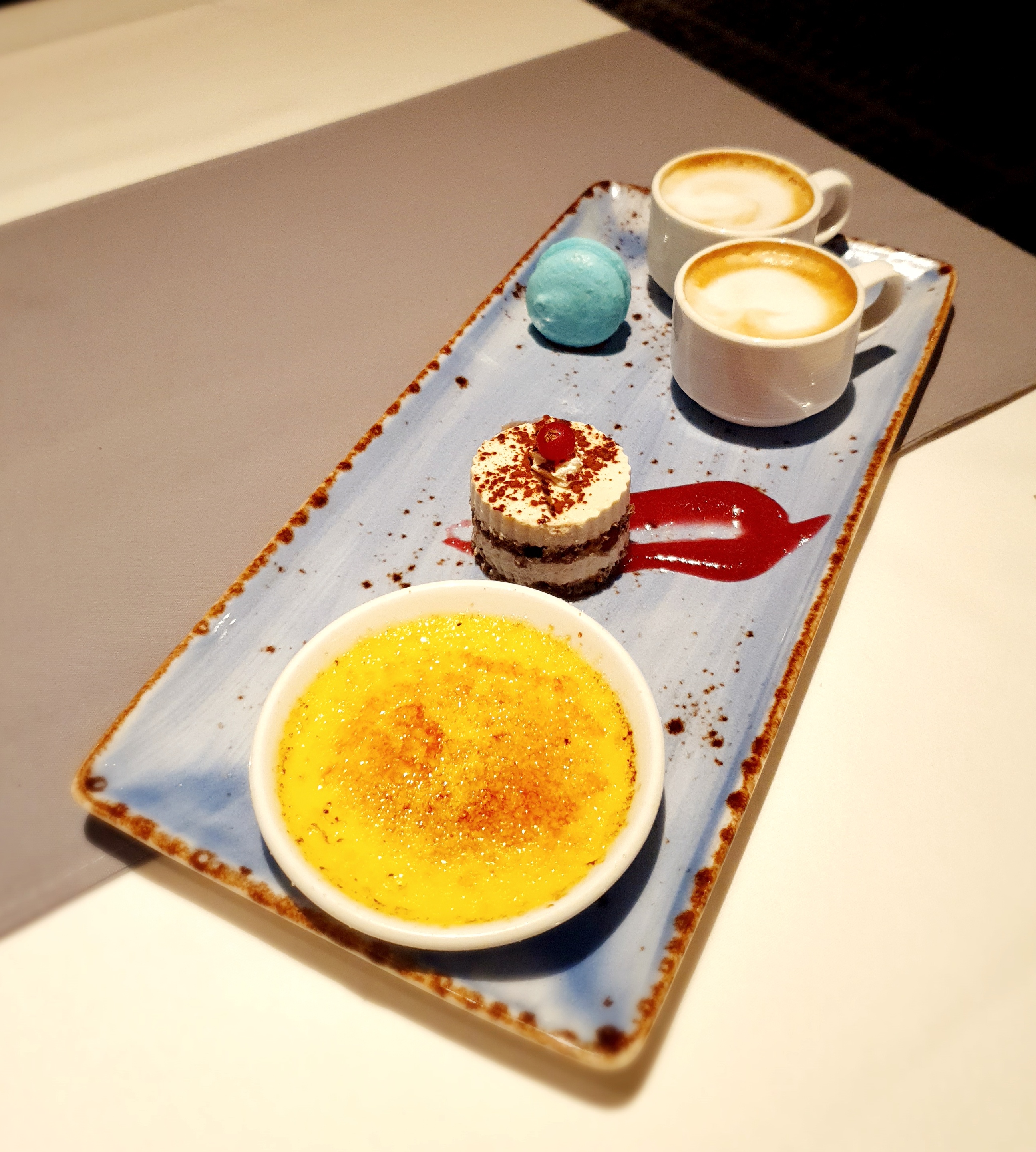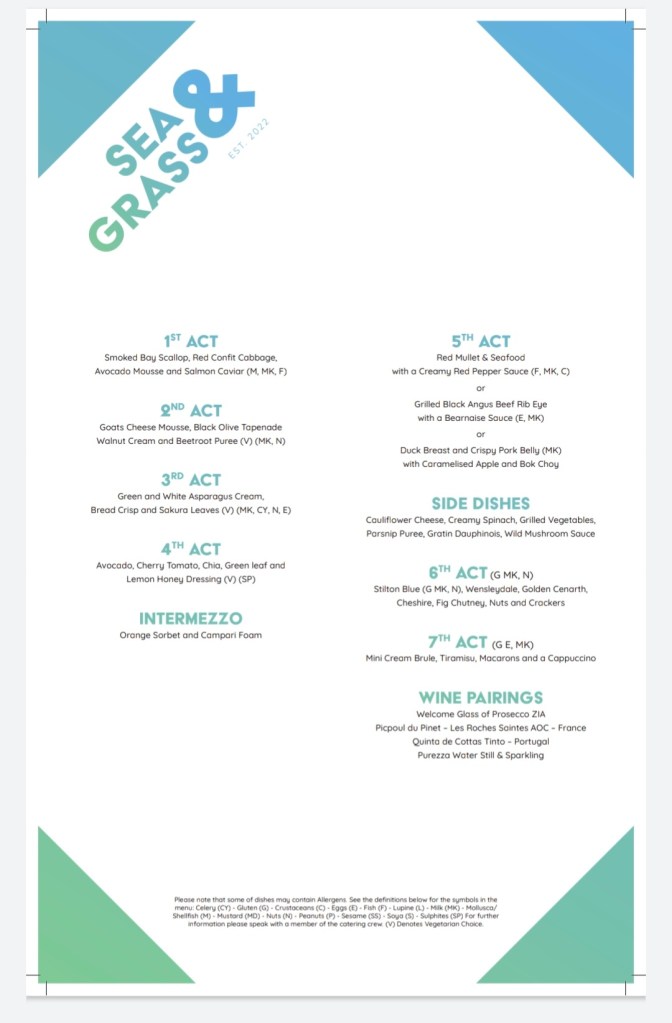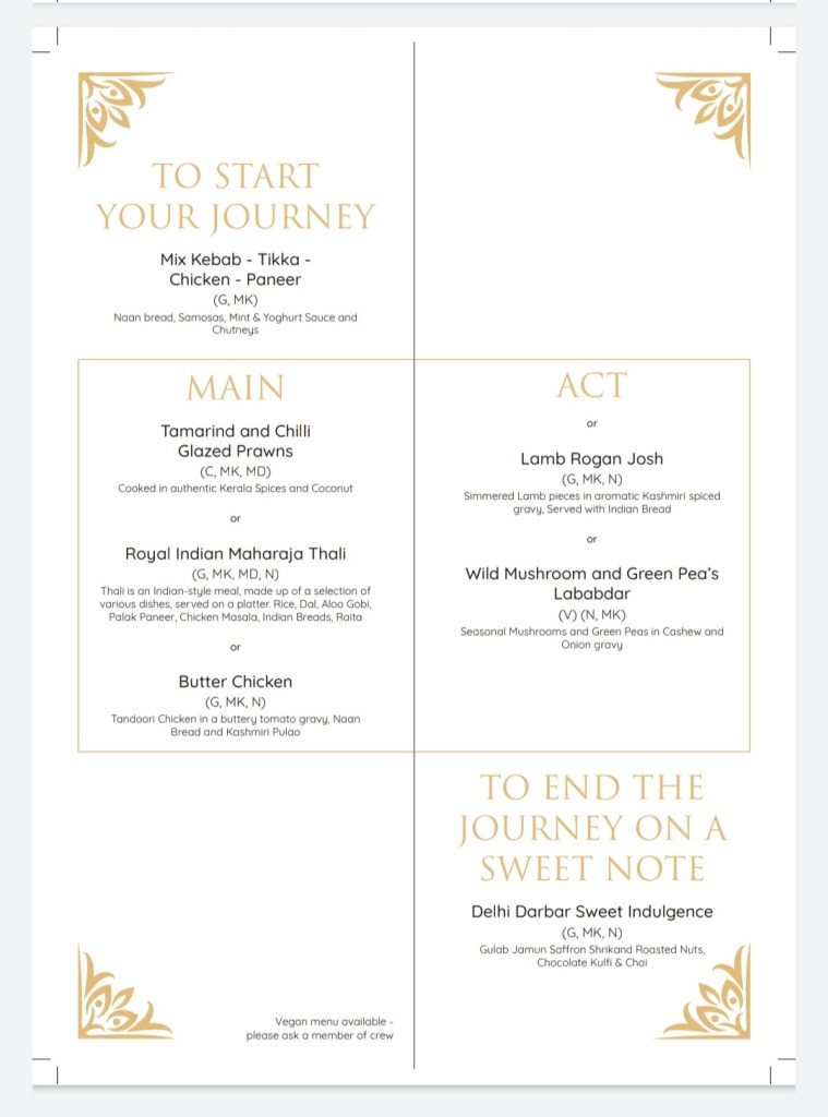 We also dined in the ships’ 2 speciality restaurants – Saffron and Sea & Grass. I must be honest; I wasn’t expecting the portion sizes in Sea & Grass that were served. It’s a 7-course menu, so I thought they’d be tiny little mouthfuls, but I was SO wrong! This is an epic culinary journey and to really make the most of it, just completely forgo lunch that day. Each dish is served as per menu order, and you only select for your main course. I’ve included the menu so you can see everything that’s served and then the main course choice. The only thing I didn’t like was the goat’s cheese – I’m not a huge cheese lover to begin with but can now say goat’s cheese is definitely not the one for me. The cost at Sea & Grass is £24.99 per person and it’s worth it.