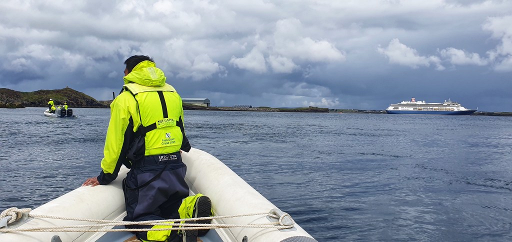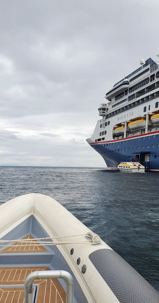 I had only booked one excursion but sadly it was cancelled as not enough other people had booked. However, my invitation for an exclusive RIB ride during our call to Stornoway made up for it! It was quite gloomy when we left the ship but within minutes the sun came out and the air temperature warmed. We had a little run into some of the smaller inlets just off from where Bolette was anchored. We spotted numerous seals and some lovely birds, as well as having the chance to peek inside a few caves as we went! I always love a RIB tour!