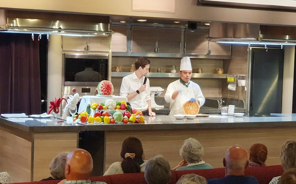 These were introduced on Fred.’s newer ships thanks to the auditorium space on deck 4 – just opposite Colours & Tastes on Bolette. They’re always popular but there was one I really wanted to see and that was ‘Traditional Stottie Cake’. I am a Geordie born and bred and a ham and pease pudding stottie is a staple in the Geordie diet – it would have been criminal for me to miss this, especially as we had Executive Chef ‘Geordie’ Michael onboard. One thing did make me laugh, though, and that was when a few people in the room mentioned that they thought they were going to be watching a cake making demonstration – they were all from the south and clearly not accustomed to the Geordie stottie bread.